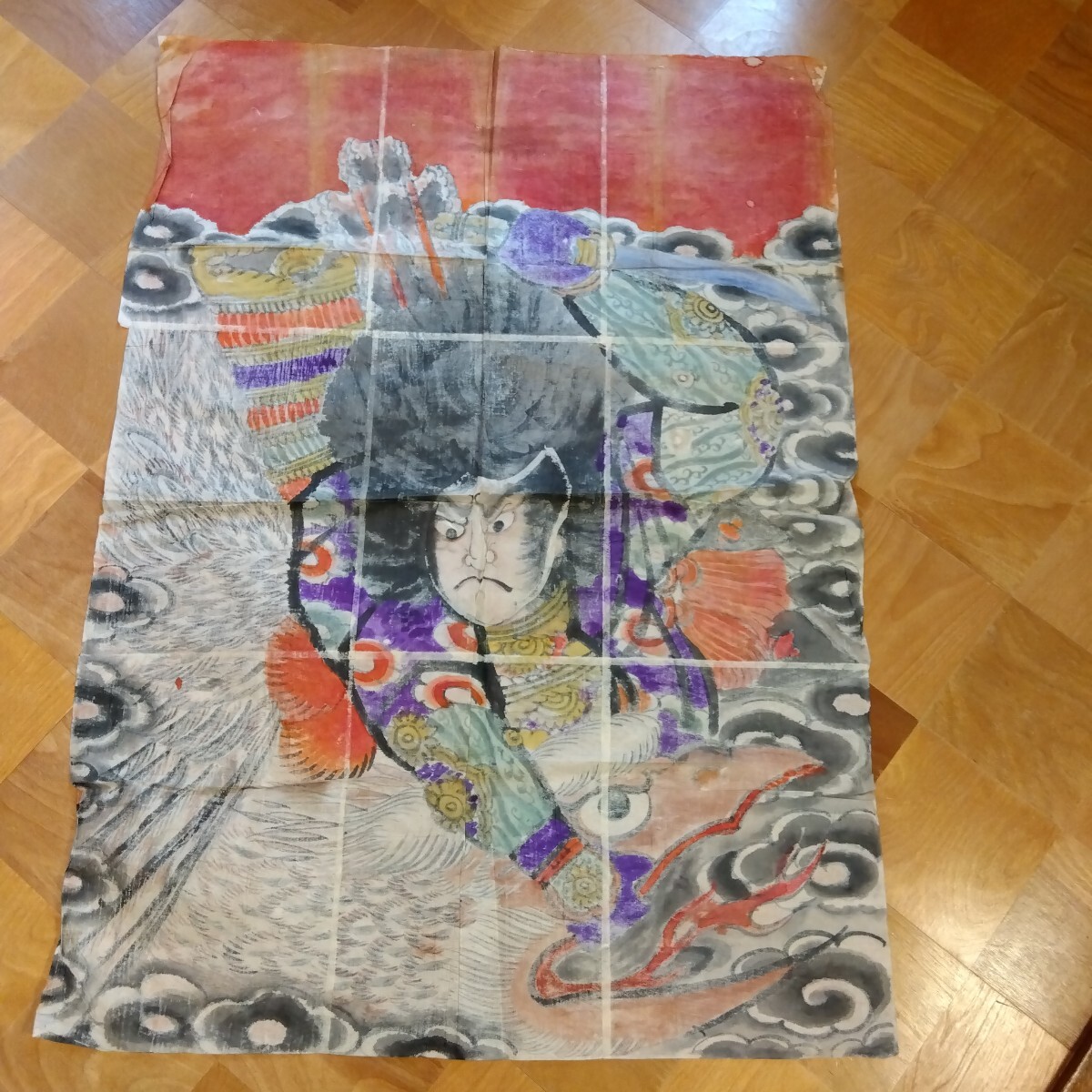 手描き 凧絵 縦100cm ×横70cm(約) 薄い和紙です。