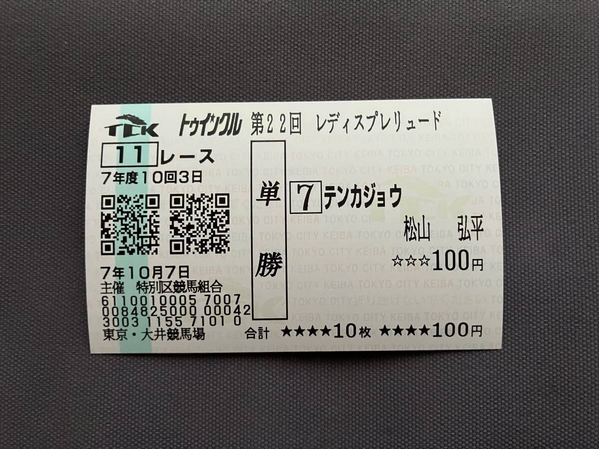 2025年度レディスプレリュード現地単勝馬券テンカジョウ