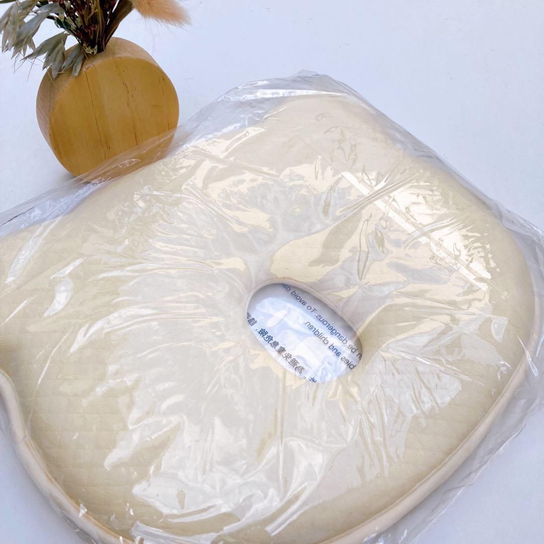枕の高さを、首周りは浅く、後頭部の部分は高くすることで、赤ちゃんの頸椎に負担を掛けないよう、圧力を分散させます。