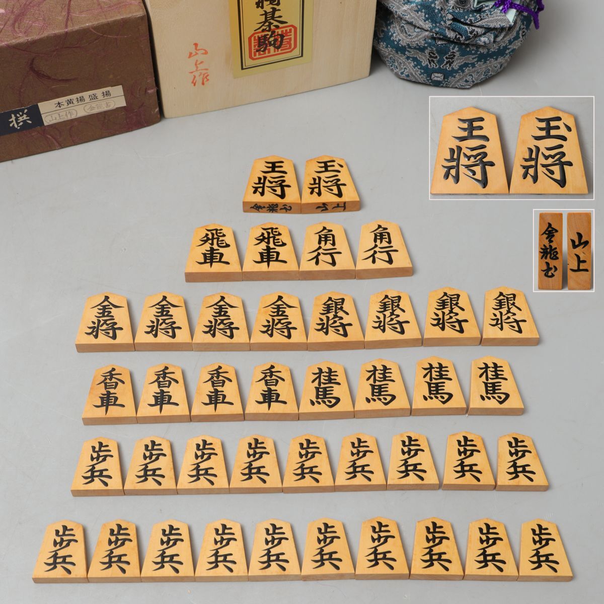ご覧いただきありがとうございます。 将棋道具 【山上作 金龍書】本黄揚 盛揚 盛上 将棋駒 箱付属 の出品です。
