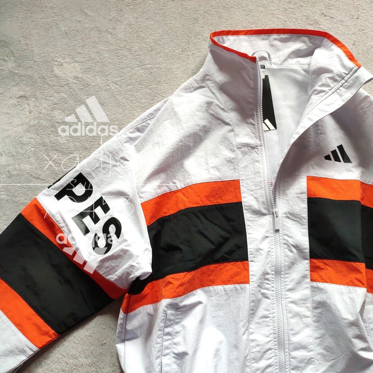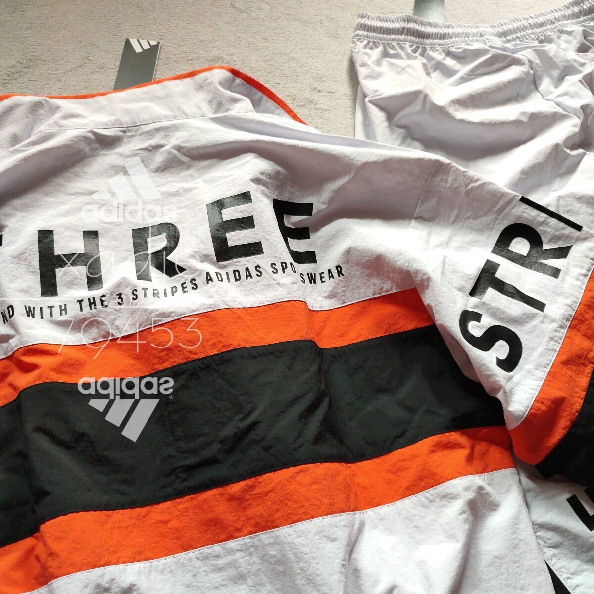 新品 正規品 adidas アディダス 上下セット ナイロン セットアップ 裏地メッシュ付き 薄手 グレー オレンジ 黒 定価18040円 ゆるめ XL