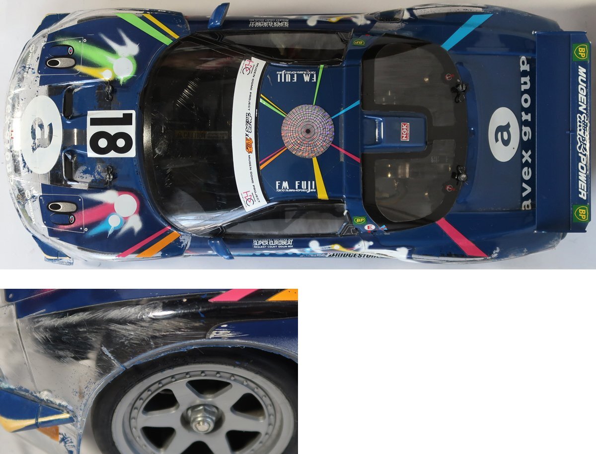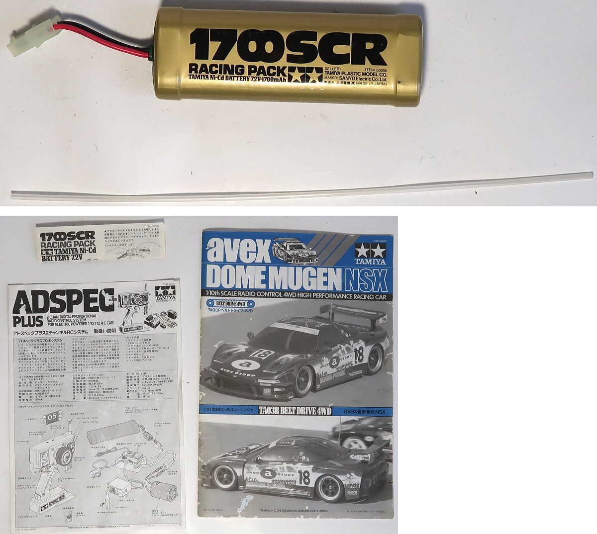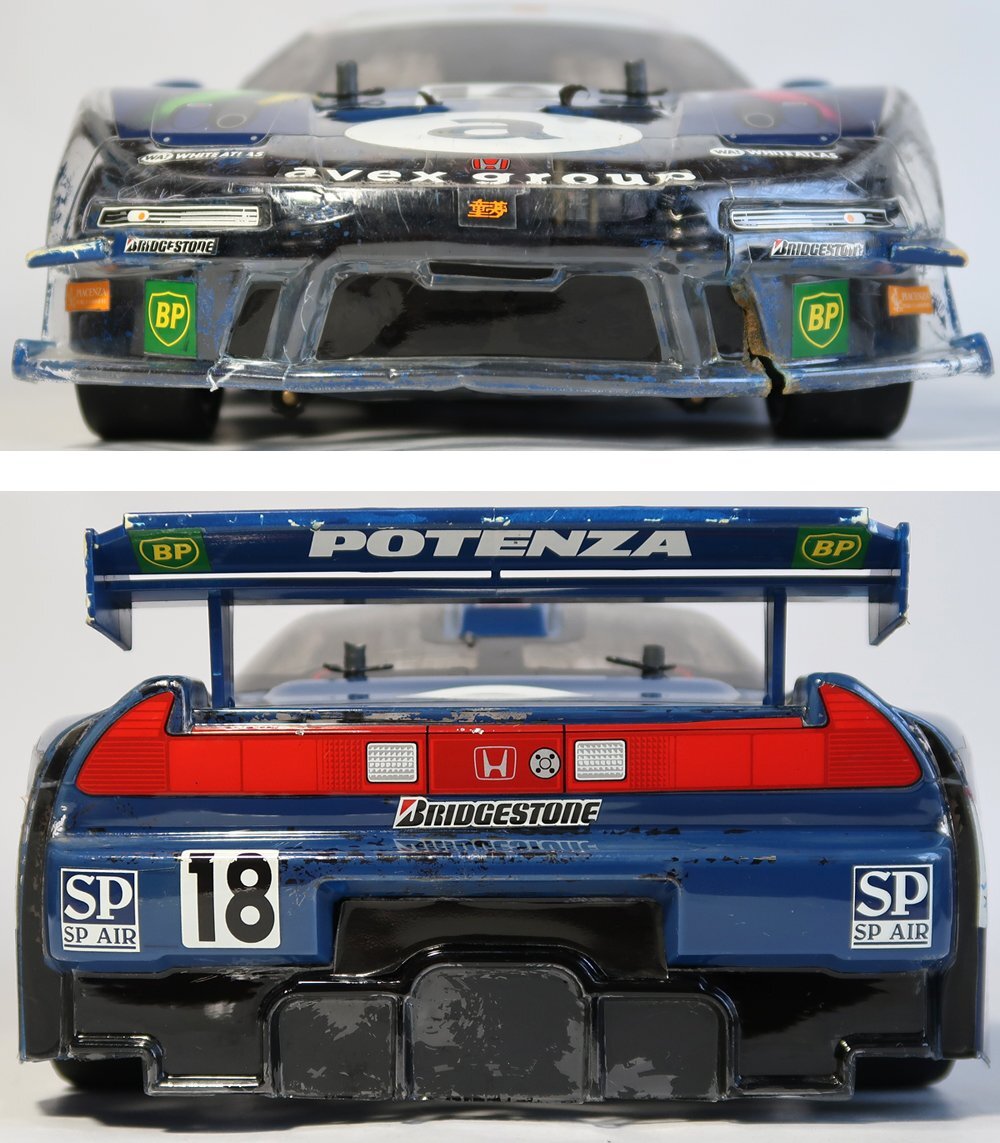 出品は画像の物が全てです。他に必要なものがあればご自分でご用意ください。ラジコンカーは使用品ですし古い物ですので所々に傷や汚れがあります。ボディは塗装が劣化して剥がれてきていたので剥がせる箇所は水とブラシで剥がしました。ボディのフロントに当たってできたダメージがあり、何箇所か割れている箇所があります。この状態で付属のバッテリーを充電してテストをしましたが特に問題なく動作はしました。バッテリーはすぐに切れることはなかったのですが、消耗品ですのでいかなる状態であったとしてもノークレームです。プロポの電池とバッテリー充電器があればすぐに走行はさせることはできますが、完璧に走行させる為には多少はメンテナンスが必要です。分かる事は以上です。お取引後は一切のサポートはしておりませんので問題があればご自分でご対処ください。お取り引き後に説明以外の不足品や説明以外の破損や故障が有ったとしても返品は出来ませんしクレームもお受けできません。問題があれば全てご自分でご対処ください。