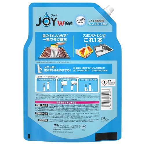 ジョイ W除菌 食器用洗剤 ファブリーズ消臭技術 フレッシュクリーンの香り 詰め替え 1550mL [大容量]
