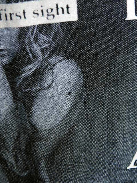 「女性の肩あたりに、ドット抜けのようなプリントの欠け」があります。