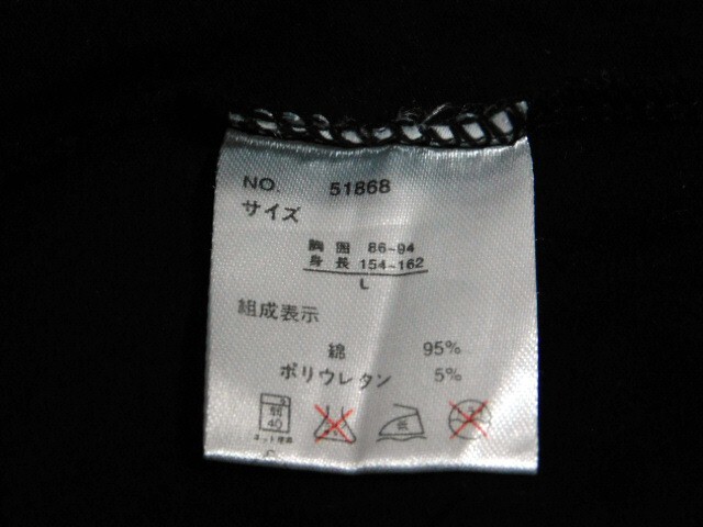 ・タグがかなり薄くなっています。(おそらくですが)「胸囲 85~94 身長 154~162」「L」となっています。
