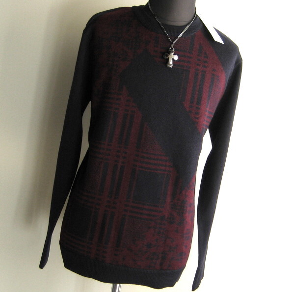 1.5万 新品 L ハイストリート ジャガードクルーネックニット ネイビー サンプル 609
