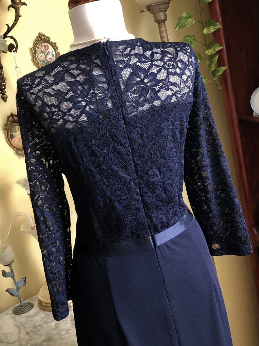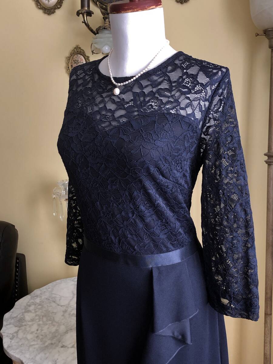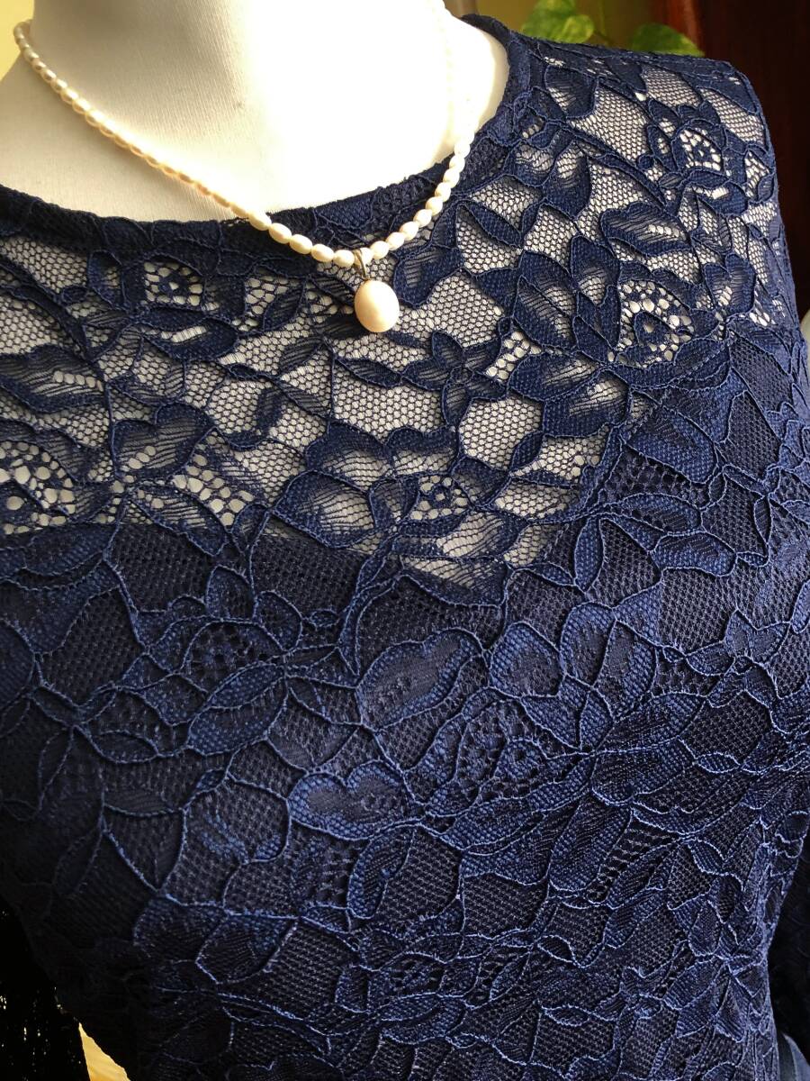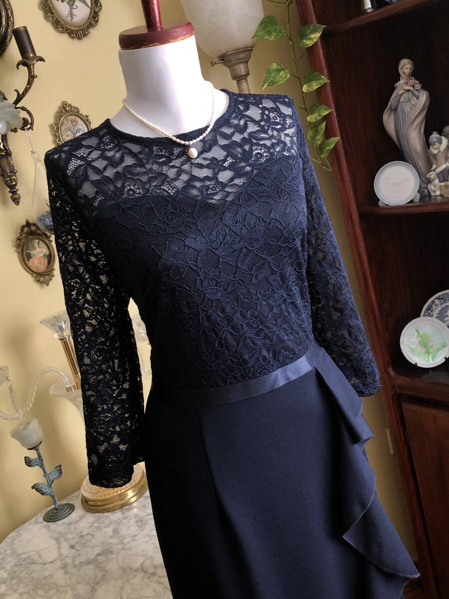 【MISSMNY】より、素敵なレースのカクテルドレスです。 お花柄のストレッチレースが綺麗です。 ラッフルがトリムされたマーメイドスカートも素敵ですね。 ウエストのリボンもストレッチします。 ストレッチスムースの裏地が付いています。 後ファスナーで開きます。 【状態】新品 【ブランド】MISSMNY 【サイズ】表示サイズ/us(アメリカ)XL 日本対応サイズ目安/ 17号サイズぐらい *個人差がございます。必ず採寸をご参照ください。 【採寸】平置き採寸です。 肩幅41㎝、身幅50㎝、ウエスト42cm、着丈後最長143㎝(上身丈41㎝+リボン幅2㎝、スカート丈後最長100㎝) *ストレッチします。 【カラー】濃紺 【素材】ポリエステル94%、エラスタン6% ポリエステル95%、エラスタン5% 【裏地の素材】ポリエステル100% 【着脱】後ファスナー |