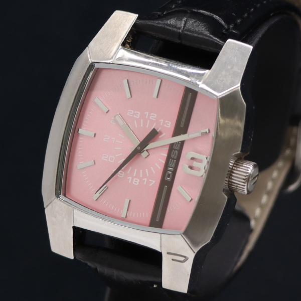 1円 稼働 ディーゼル QZ ピンク文字盤 DZ-5100 メンズ腕時計 1927000 10NGB KMR