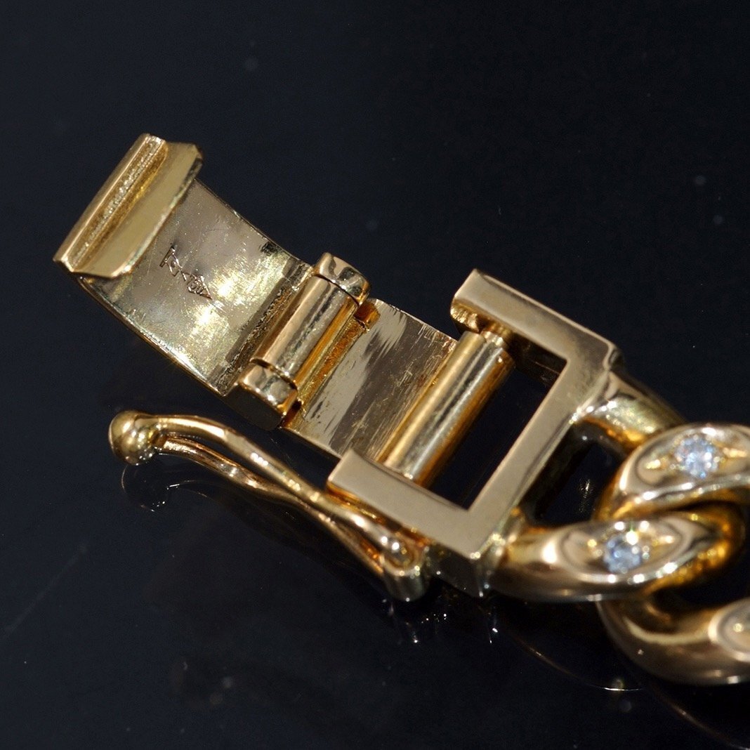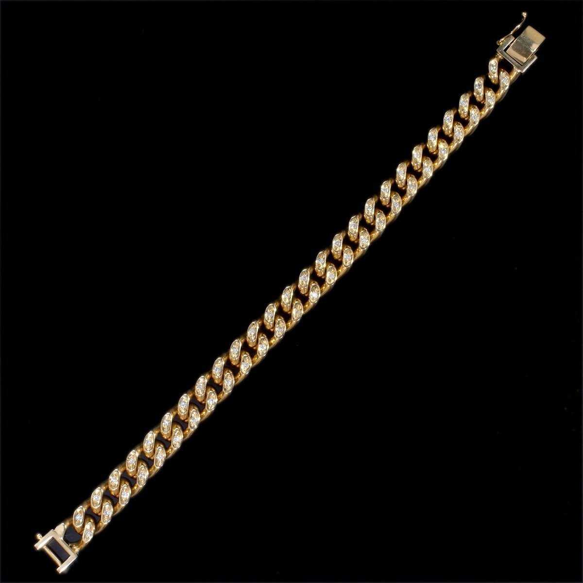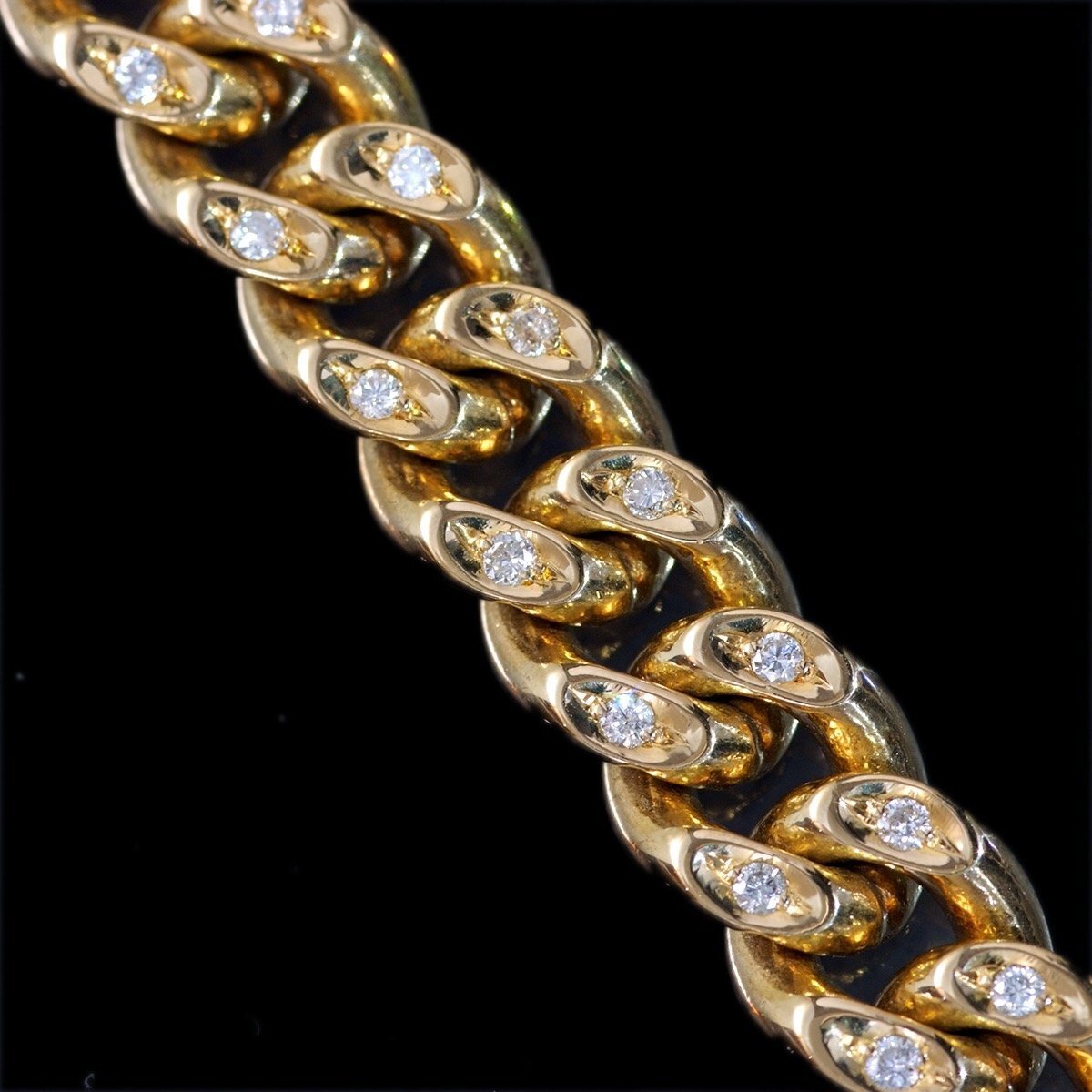 そのスペックは、もはや宝飾品というよりは、一つの資産、あるいは武器と呼ぶにふさわしいものだった。幅10.9mm、重さ97.0g。腕に巻けば、まるで黄金の手錠のような圧倒的な存在感を放つ。熟練の職人が気の遠くなるような時間をかけて、寸分の狂いもなく組み上げた、滑らかな動きを見せるチェーン。その一コマ一コマの表面には、極上の天然ダイヤモンドがパヴェセッティング(石畳のように隙間なく敷き詰める技法)されていた。トータル1.53カラット。部屋の常夜灯のわずかな光さえも貪欲に拾い上げ、冷たく、そして鋭い、権力の象徴たる輝きを放っている。