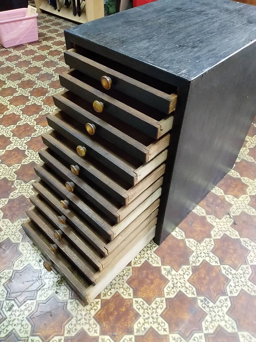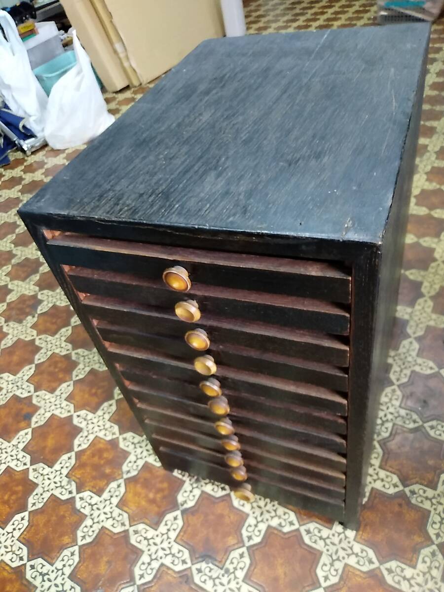 | ◆商品説明◆ | 業務用牌収納段箱、傷、汚れなどありますがひどい物ではございません。。 高さ45cm、横幅27cm、奥行き39cm |