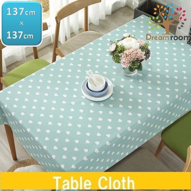 テーブルクロス 水色ハート PVC製 防水 防油 加工 正方形 137cm×137cm ランチョン ティーマット テーブルリネンセットI-022