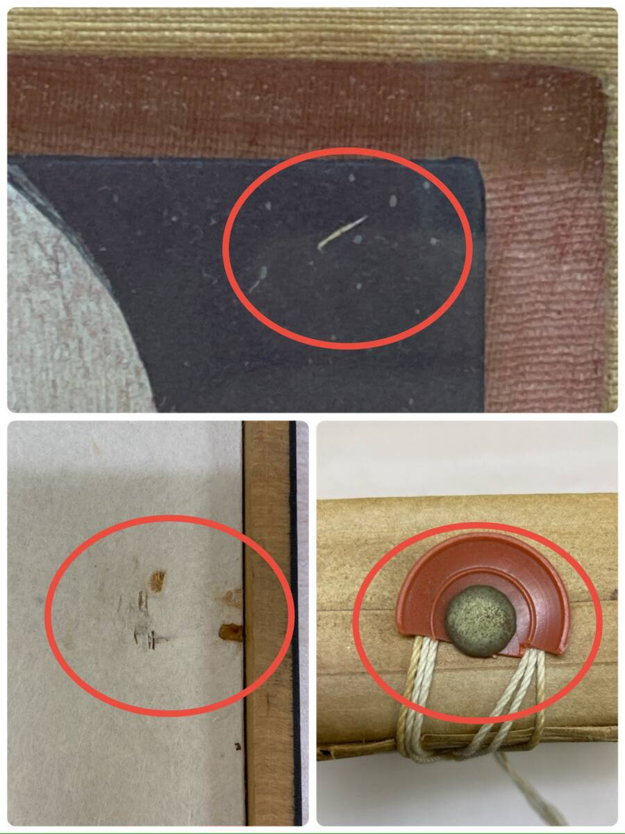 ■額の状態:若干スレ傷あり、アクリル内側に汚れあり、額裏シミ・釘サビ跡あり・箱の文化鋲欠けあり