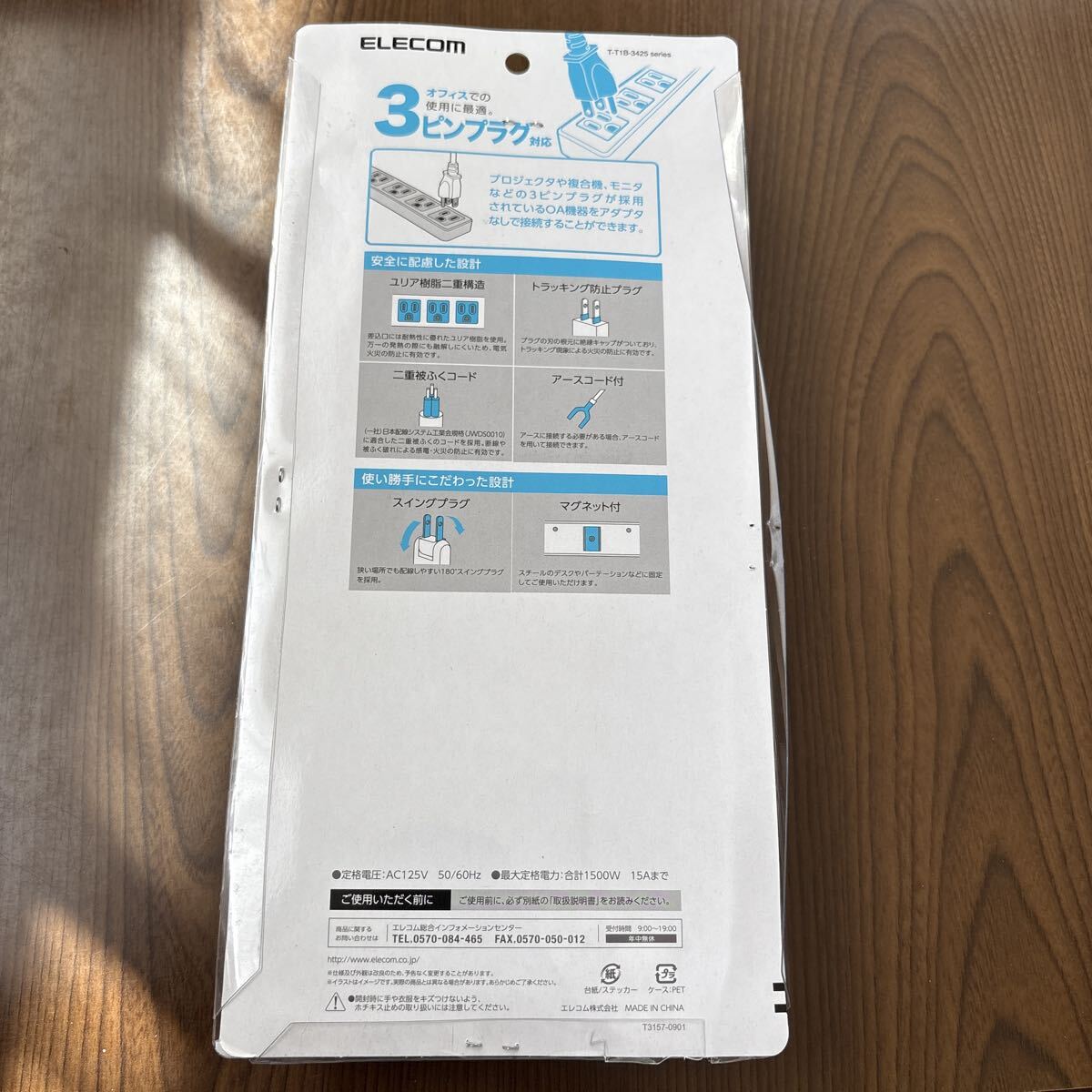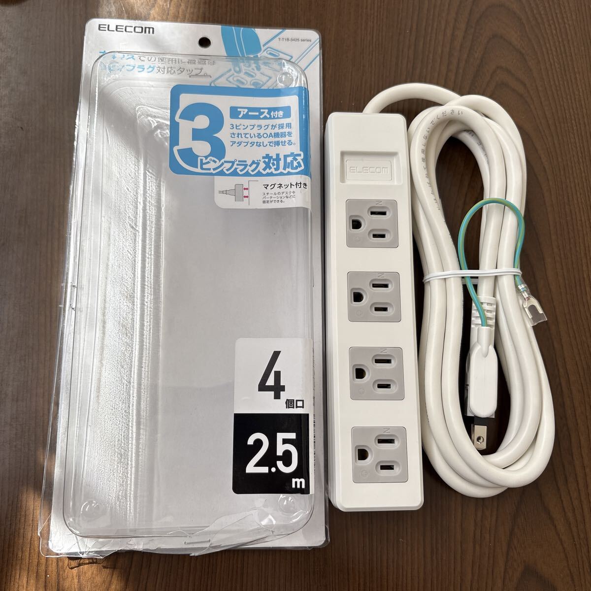 エレコム 電源タップ 3ピン マグネット付 4個口 2.5m ホワイト T-T1B-3425WH