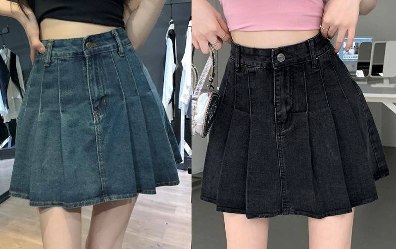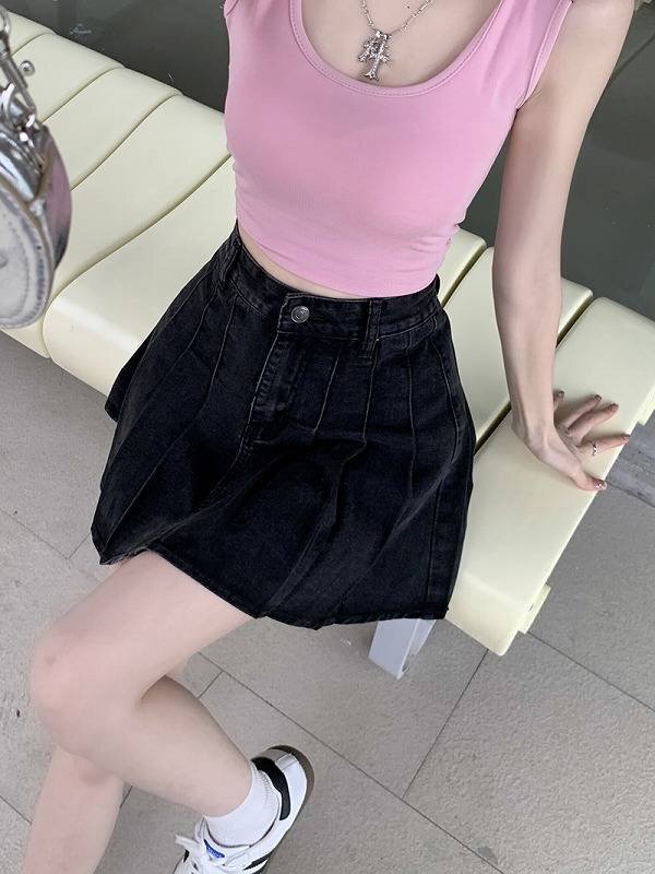 全2色 デニムスカート ハイウエスト フリル ミニスカート デニム 【大きいサイズあり】 XL ブラック