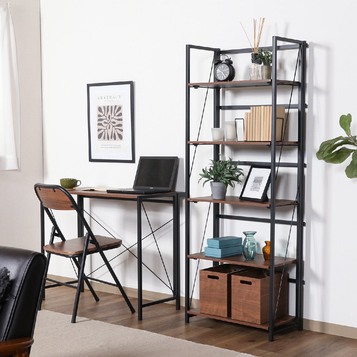 備 考 | ■本棚から飾り棚としても使えます。 ■パソコン作業やキッチン作業サイドにぴったりです。 ■使わない時は折り畳んで収納できます。 |