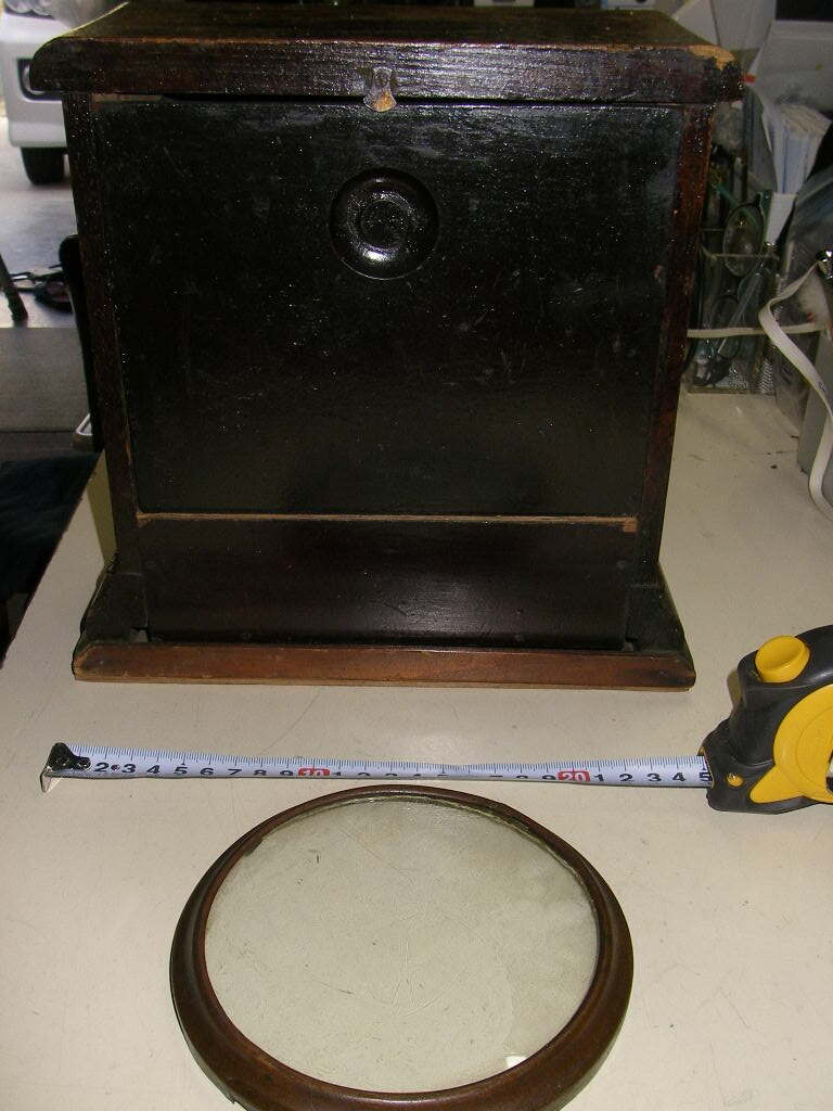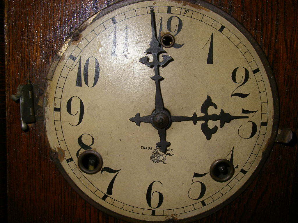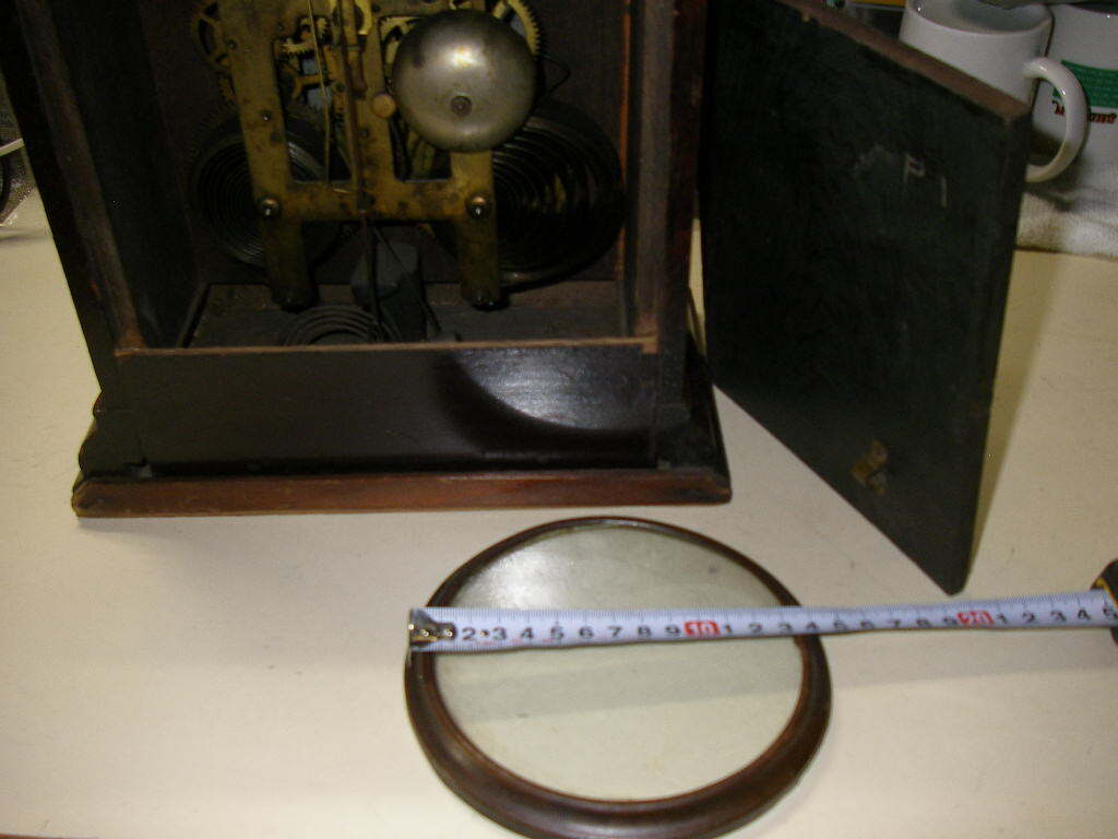 木製 置時計 文字盤の上部には『S』と『F』の文字有り振り子の速度を調整する為のレギュレータです。