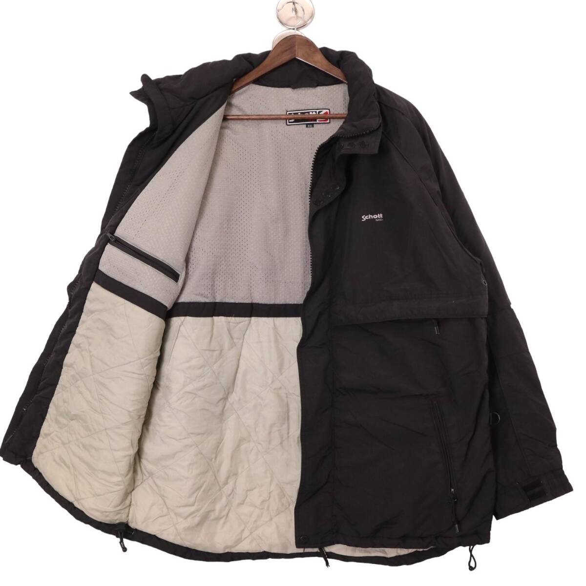 | 【商品管理番号】 A0813 【ブランド】 Schott/ショット 【サイズ】 XXL 【実寸サイズ】 着丈:約86.5cm 身幅:約69cm 裄丈:約97cm 【主な素材】 表地 : ナイロン 【色】 ブラック 【仕様】 90年代 フード収納可能、フードドローコード、ウエストドローコード ナイロン 【状態】 特記事項: 数箇所に薄い汚れと薄い毛玉、内側タグに糸ほつれがございます。着用に問題はございません。 | |||
