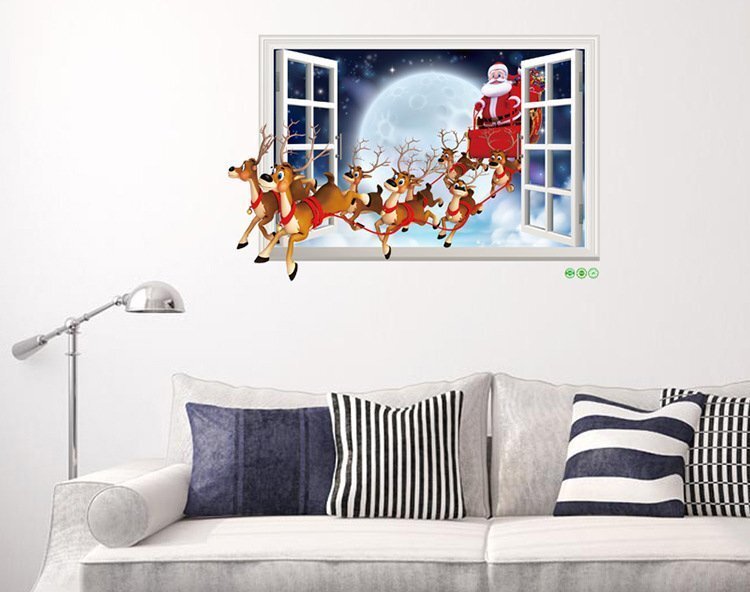 Xmas ウォールステッカー 【窓× サンタクロース 】 インテリア モダン ガラス 窓 ショーウィンドウ 剥がせるシール