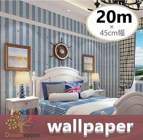 【 20m 】 ウォールペーパー 壁紙 ストライプ×ブルー 北欧風 インテリア はがせる シール DIY 子供部屋 糊付き