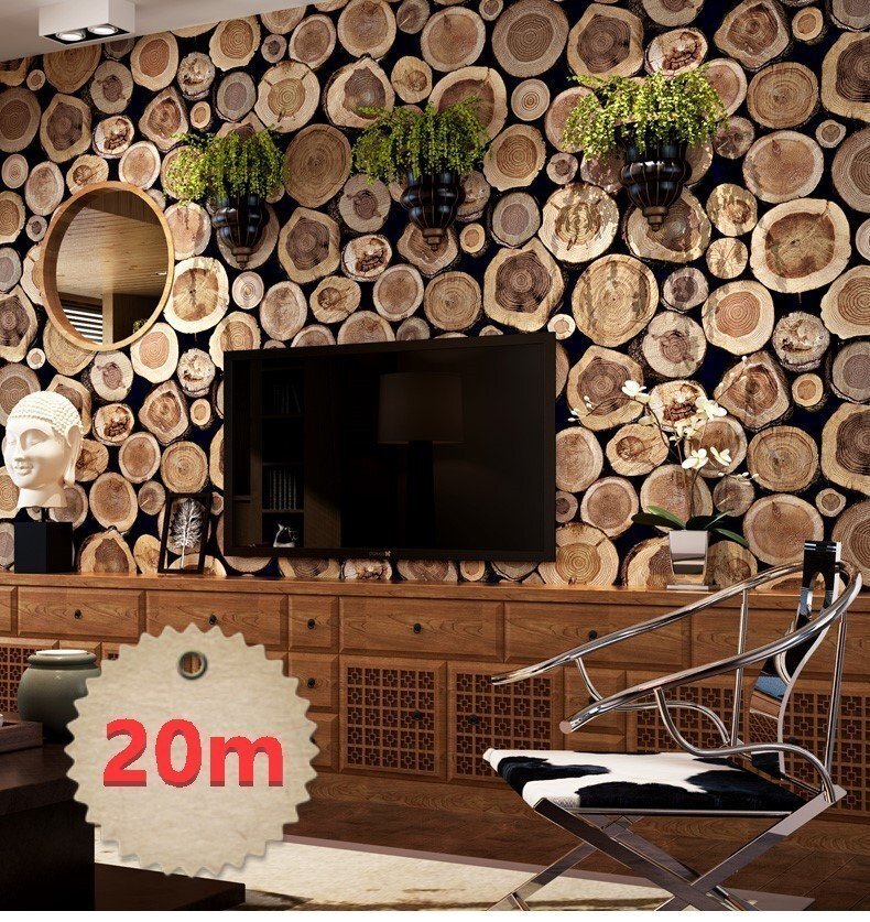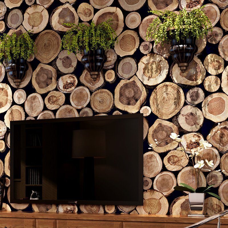 3D ウォールペーパー 【B256 切り株 丸太 赤茶】 木目 53cm×20m 和モダン インテリア DIY のりなし 壁紙 クロス リメイク