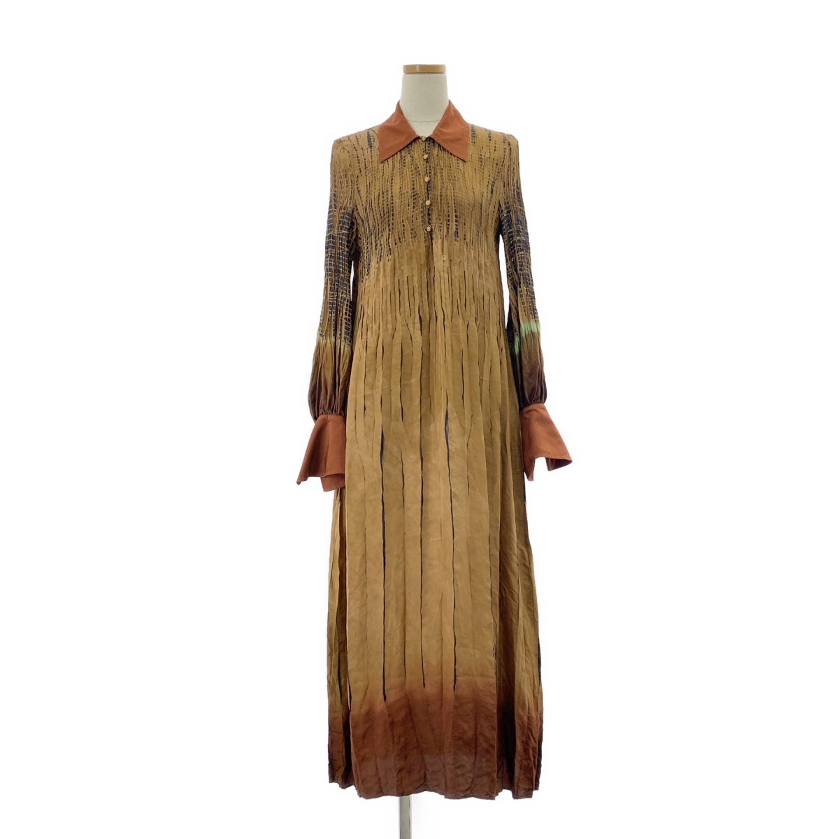 Mame Kurogouchi / マメクロゴウチ | 2023SS | Arimatsu Shibori Ombre Dyed Silk Shirt Dress 有松絞り シルク シャツワンピース | 2 | ブラウン | レディース