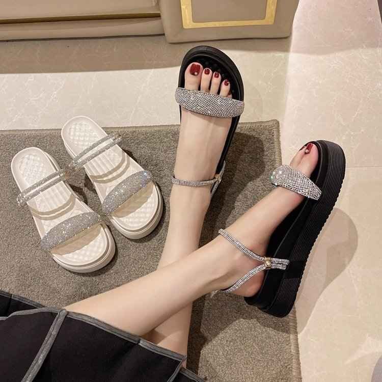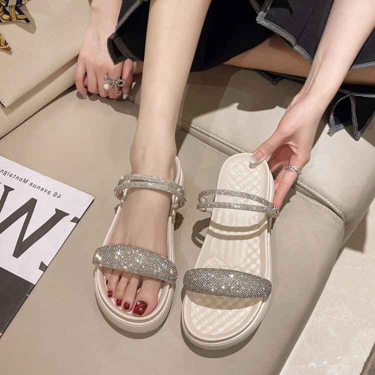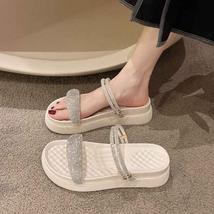 厚底サンダル スリッパ 春夏 レディースファッション オシャレ INS ストーン 25.0cm ホワイト