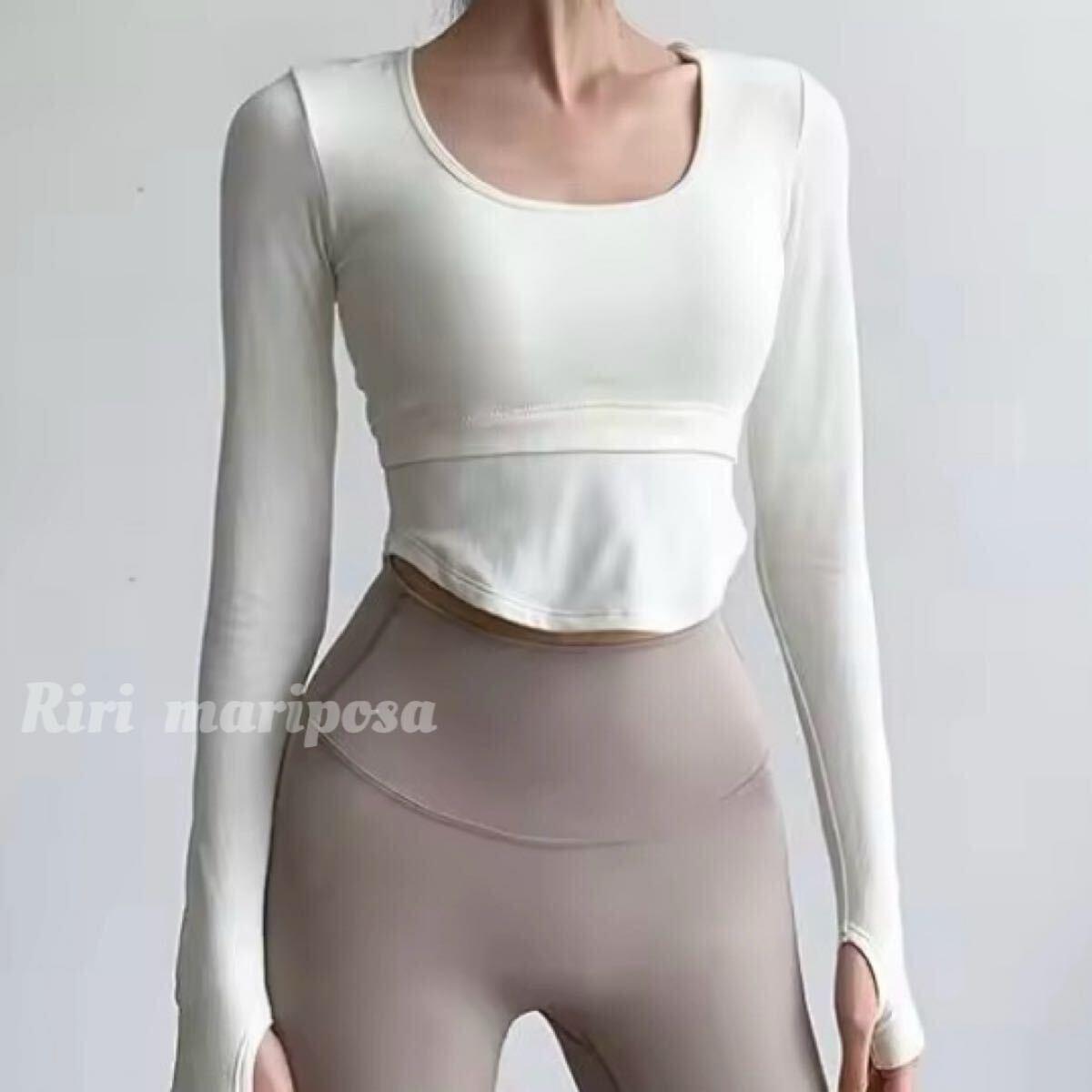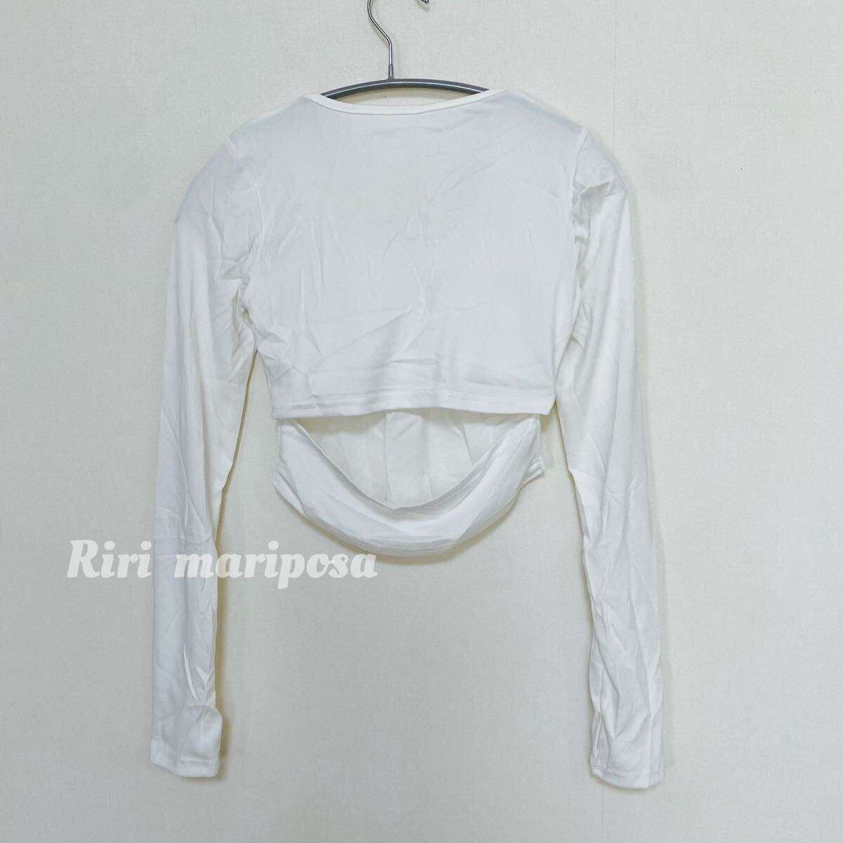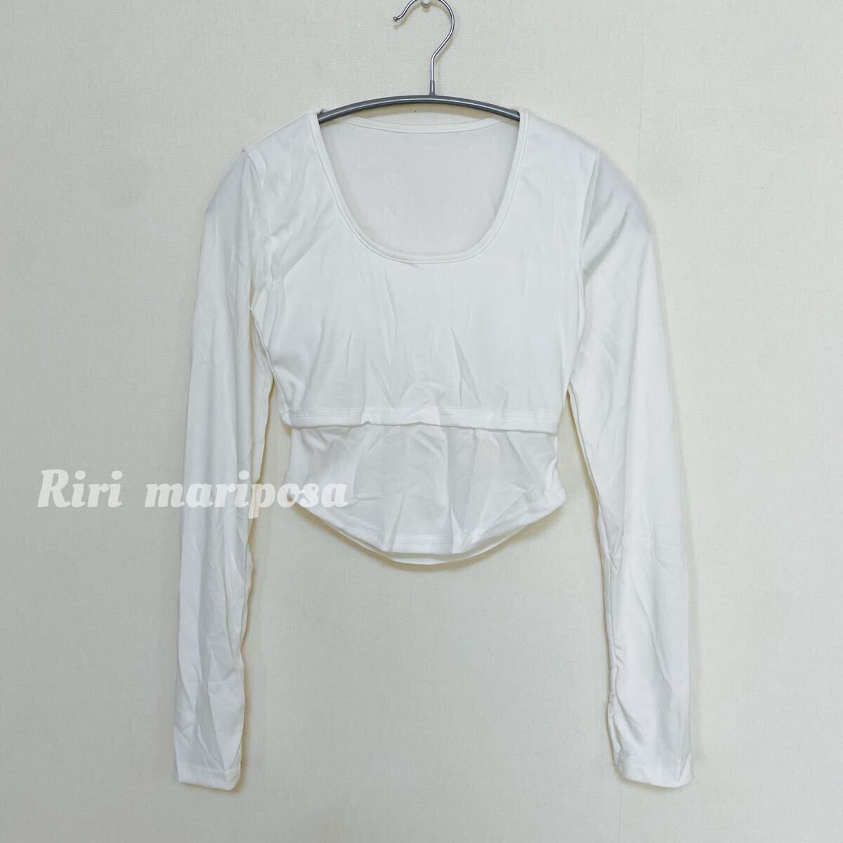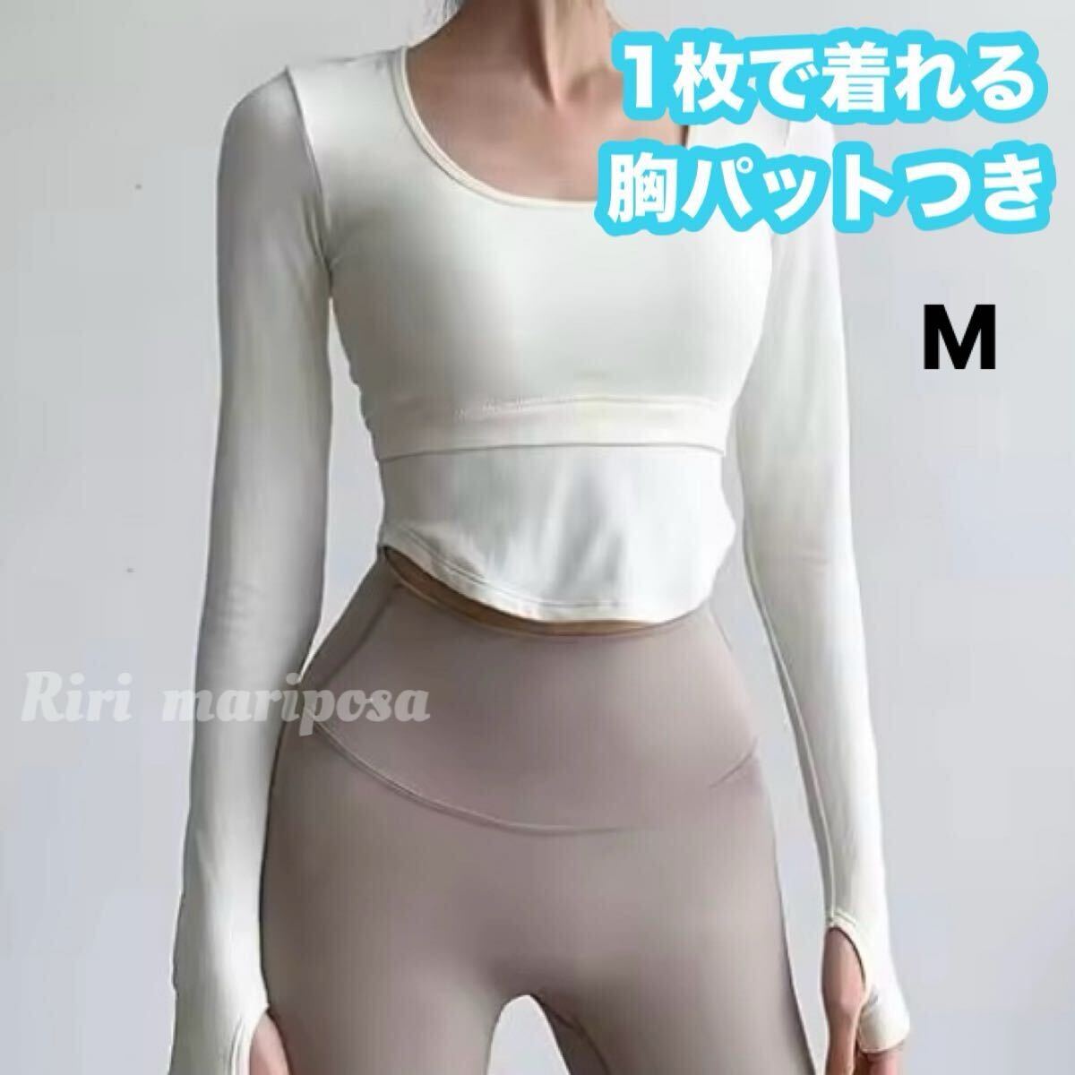 【新品】足長効果バツグン!長袖ヨガトップス 白Mサイズ リブ編みカットソー ヨガウェア