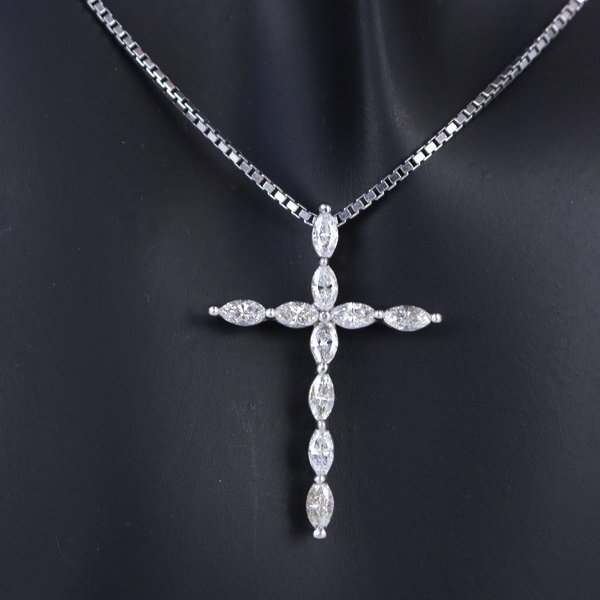 Aランク【ジュエリー】クロスネックレス/ダイヤモンド/Pt850/K18WG/40.5cm/7.8g/十字架