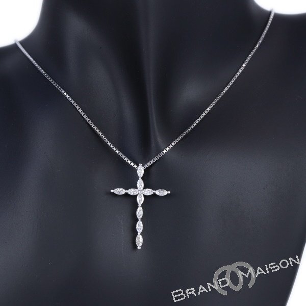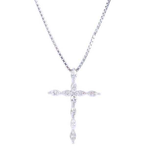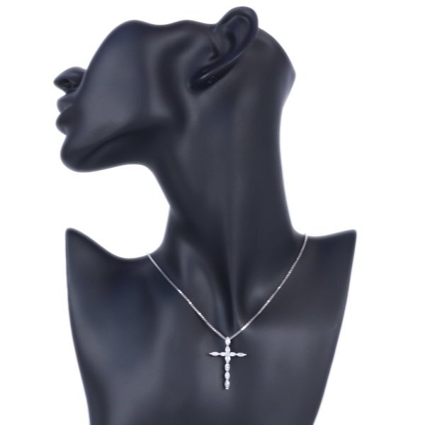 Aランク【ジュエリー】クロスネックレス/ダイヤモンド/Pt850/K18WG/40.5cm/7.8g/十字架/アクセサリー/レディース/プラチナ/ゴールド