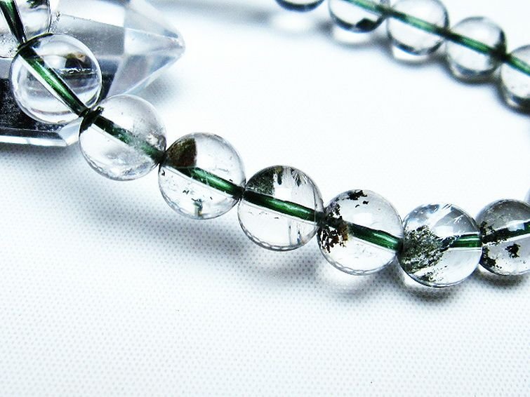 ■商品名: グリーンファントムブレスレット ■商品ID: T13-9561 ■商品重量:約 19.4g ■商品サイズ:内周約:156mm(±5mm)粒直径約:9mm(±0.5mm) ●ファントムとは、「影」「幽霊」という意味。 水晶の結晶が生成していく過程でいったん成長が止まり、その後再び成長を開始すると、その境目に気泡や他の物質が取り込まれ、まるで山の影を思わせる模様ができます。時にはそうした山の影が幾層にも連なっる場合があります。こうしてできた石を、ファントム水晶と呼びます。和名では、「幻影水晶」「幽霊水晶」と称される場合もあります。 ファントム水晶は、山や谷といった困難にめげずに進む「克服」の暗示や、物事を隆起させる暗示を放つとされます。そのため、商売や事業運を興隆させたい人に非常に人気があり、また成長期の子供にお守りとして持たせたりする場合もあります。 また、新陳代謝を促進して細胞の再生を促したり、電磁波を消散させるチカラ、霊能力やサイキックなパワーについても語られています。 ファントムの色は、白、緑、オレンジ、茶色とさまざまで、特に白や緑はヒーリング力が強いとされます。 また山の姿も、見事なピラミッド型から渦を巻いているような形、雪山、嵐、流星群をを連想させるものまでさまざまで、人のイマジネーションを強く刺激します。 パワーストーンを知れば知るほど、こうした石の魅力にとりつかれる方が多いようで、ガーデン水晶やファントム水晶にひかれるようになったら、もう立派なパワーストーン通と自称できるでしょう。 ●品質:困難の克服、物事の興隆と再生、着実な進歩、成長.育成、ヒーリング、新陳代謝の活発化、肌の再生、霊視力【水晶(石英、クリスタルクォーツ)】 |