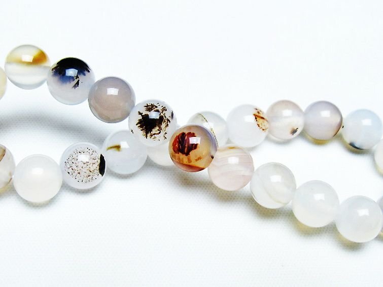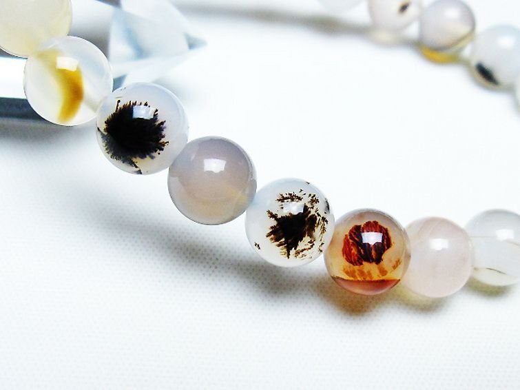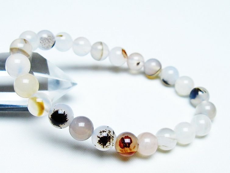 ■商品名: デンドリック アゲート ブレスレット ■商品ID: T108-6163 ■商品重量:約 17.8g ■商品サイズ:内周約:161mm(±5mm)粒直径約:8mm(±0.5mm) 【アゲート(瑪瑙)】 和名では瑪瑙(めのう)といい、アゲートの模様が馬の脳のように見える事からこのような名前が付けられました。 アゲートは赤、緑、青、黄、黒など、様々な色に着色されることで石本来のパワーがさらにアップするといわれており、着色により魅力を増す天然石はアゲートだけとも言えます。 さらにはアゲートを組み合わせるとペアになっているペアアゲート(トレジャーメノウ)は龍穴を生み出すとされ、風水的にも良いといわれています。 アゲートは古来より日本やインドやチベットなどで魔よけやお守りとされてきました。 失敗や不幸を遠ざけ金運や仕事運、成功運とも結び付けてくれる効果のほか、安産のお守りにも良いとされています。 さらに家庭円満や対人関係をスムーズにするなど、オールマイティな効果を持った石です。 ⇒ アゲートをもっと詳しく ◆ワンポイント情報 アゲートはカルセドニーの変種で、染色がされていなくともそれぞれの種類に多様な色があります。 ざっと仲間を挙げてみてもオニキス(黒)、サードニクス(橙色)、ブルーアゲート(青)、グリーンアゲート(緑)、イエローアゲート(黄)、ブルーレースアゲート(縞青)、モスアゲート(縞緑)、天眼石(縞黒)、カーネリアン(橙色)、ジャスパー(多様な縞)などとても多くの特徴と色合いを持っています。 |
