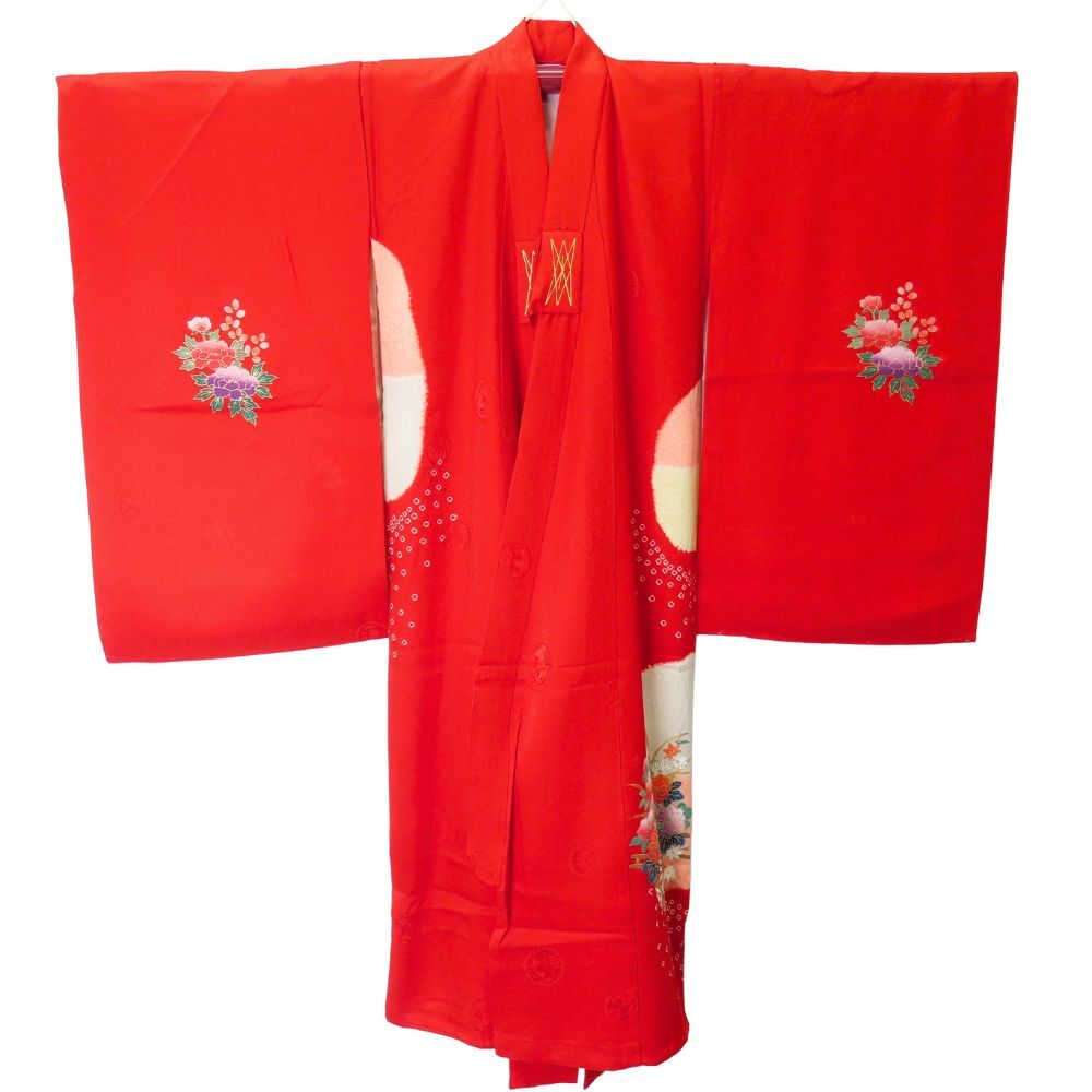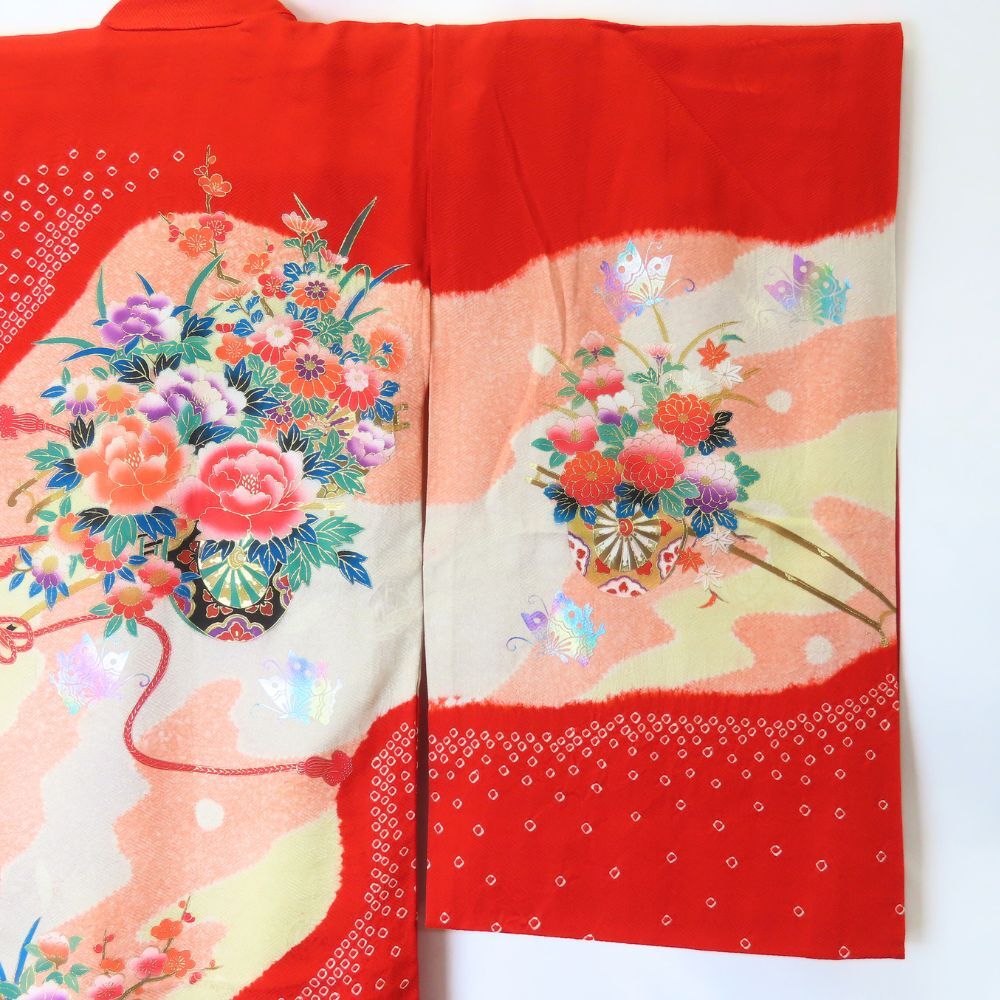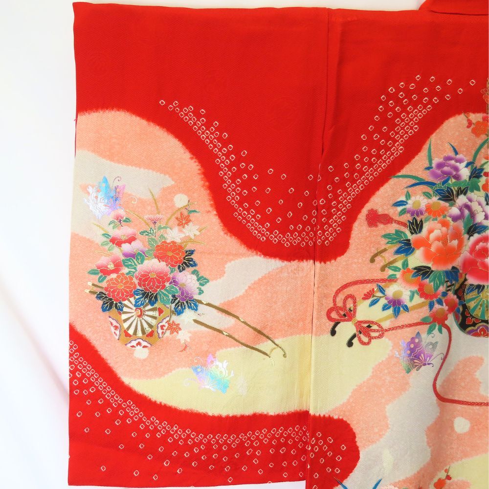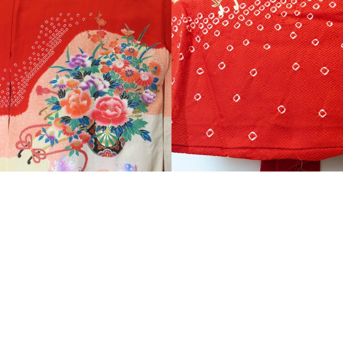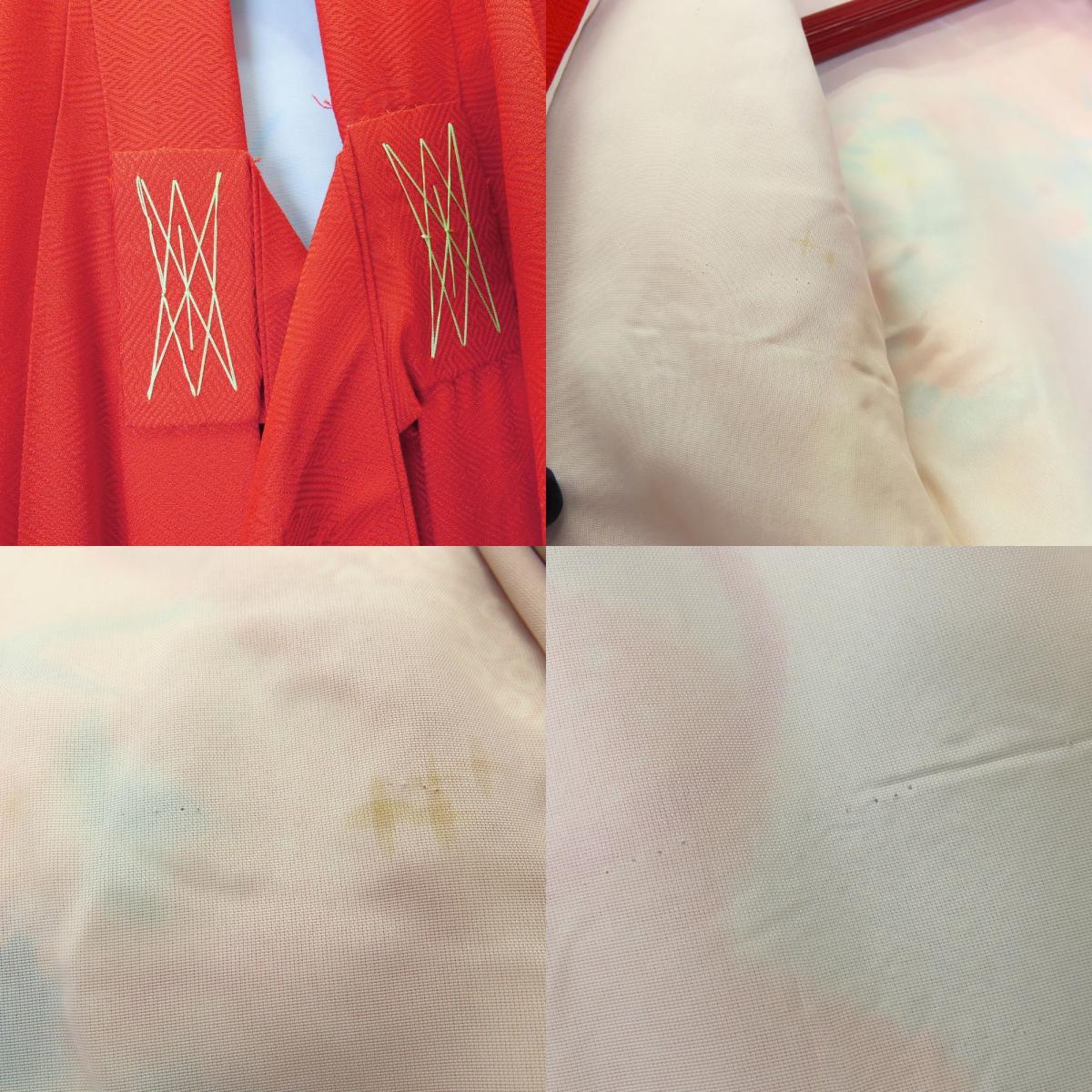 中古 子供着物 祝着 正絹(金銀糸除く) 化学繊維 赤 マルチカラー 女の子 七五三 古典柄 和装 呉服 和服 きもの