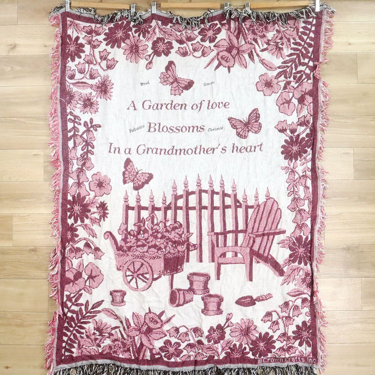 K6-7 I/O9.15-3 花柄 フラワー柄 庭 ガーデン メッセージ ラグ マット カーペット ブランケット タペストリー ソファーカバー