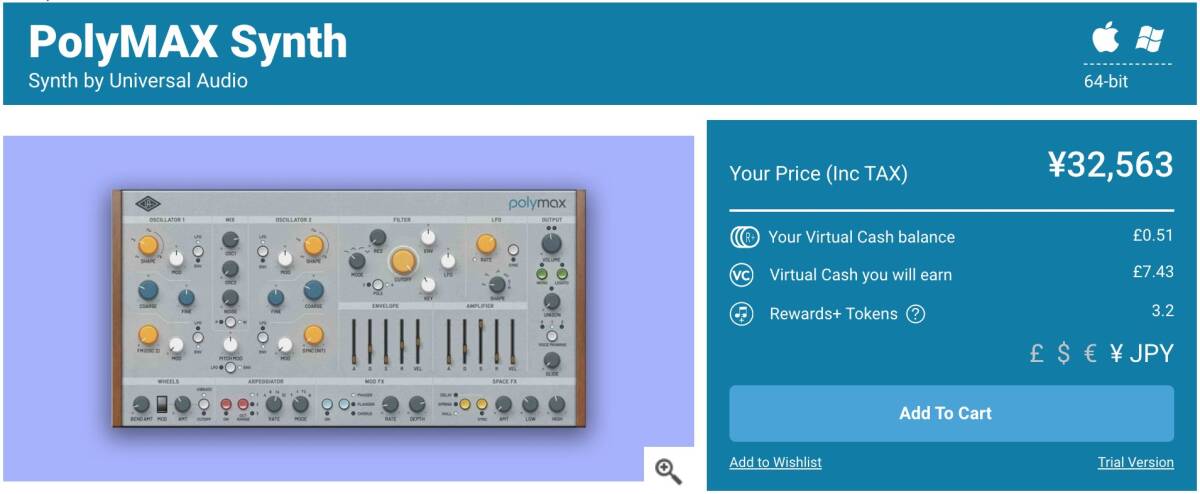 正規品 UNIVERSAL AUDIO PolyMAX Synth ビンテージ アナログシンセ プラグイン UAD
