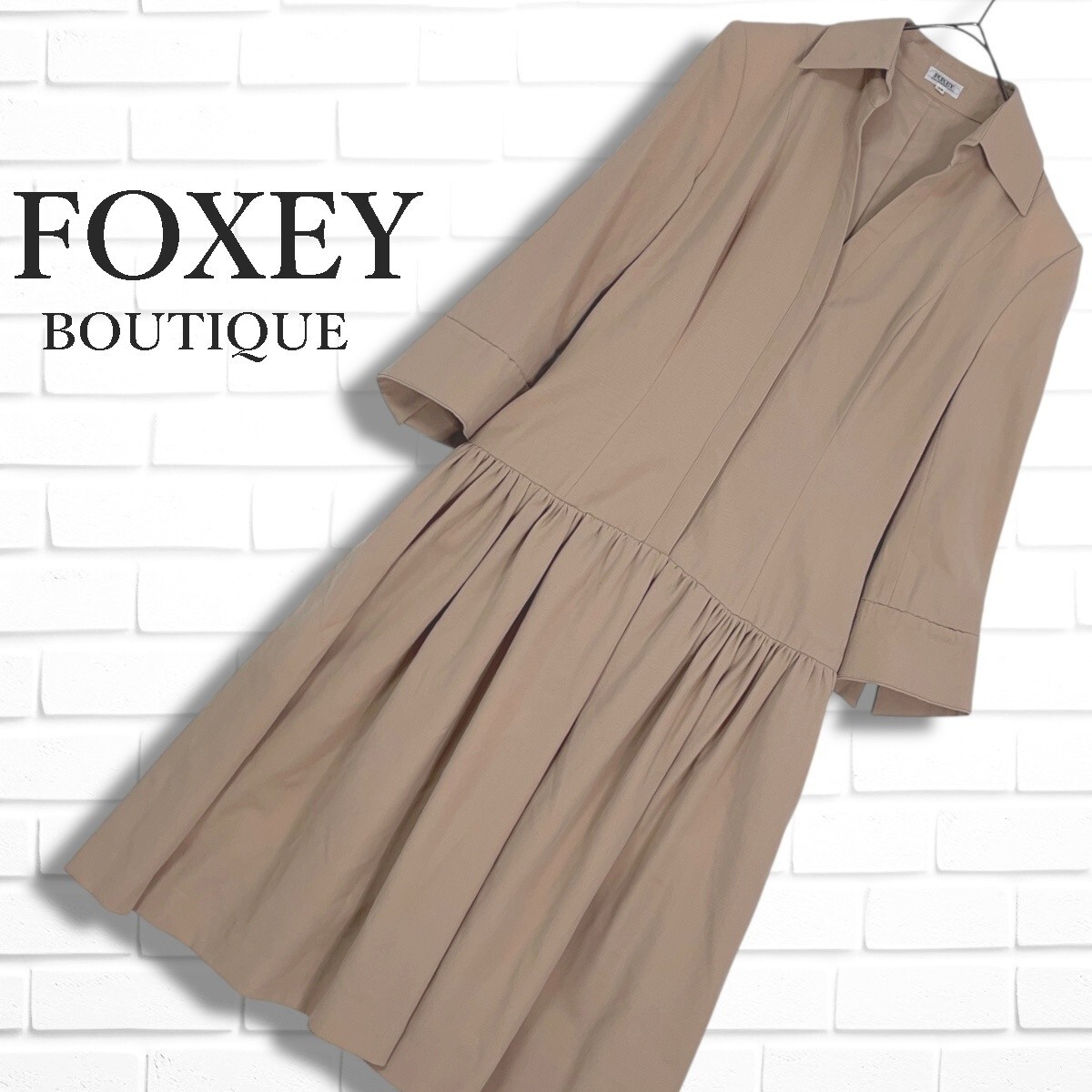FOXEY フォクシー ドッキング ストレッチ ロング ワンピース ベージュ レディース 38 M ◆日本製 送料無料◆ 0885J□