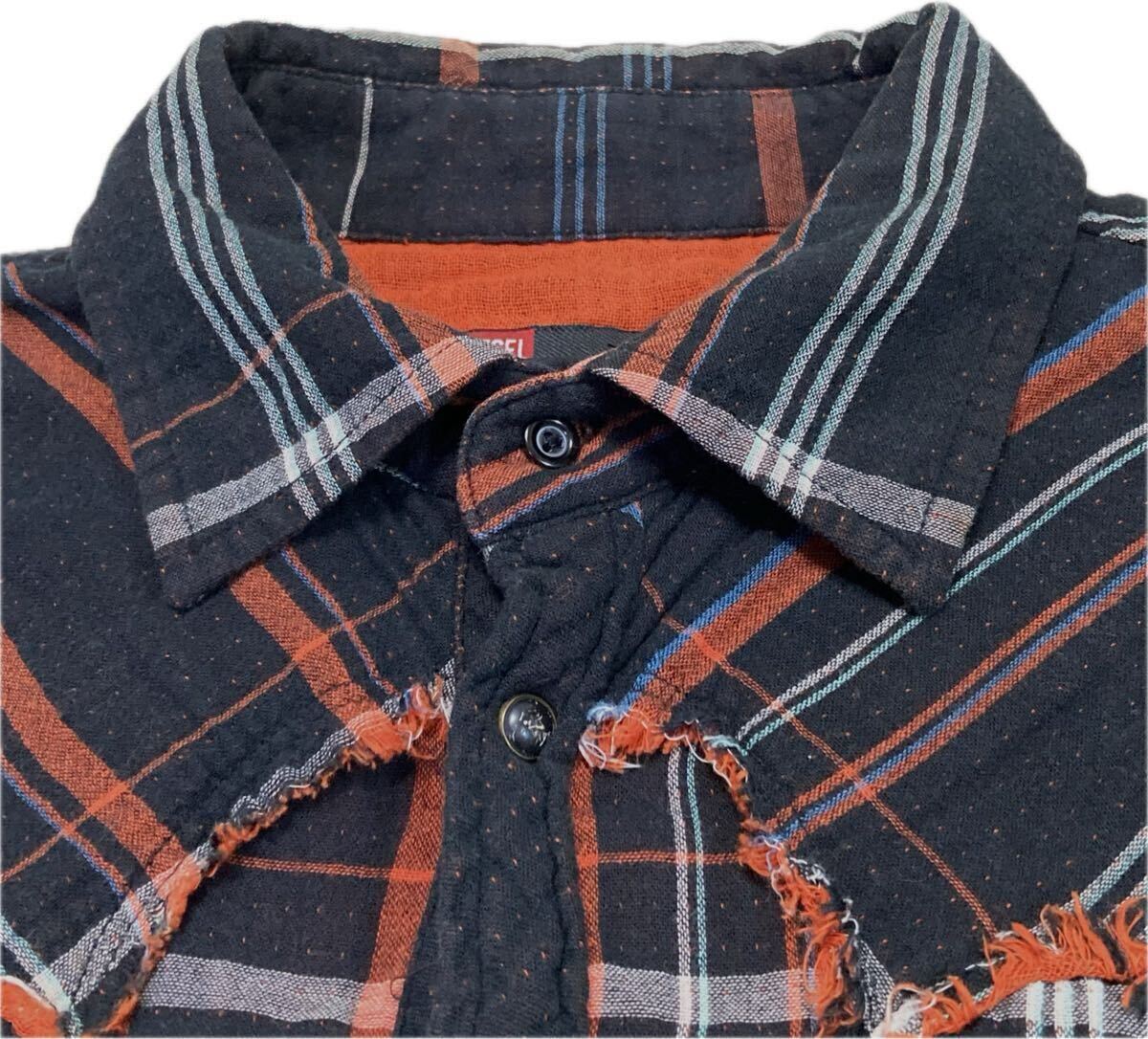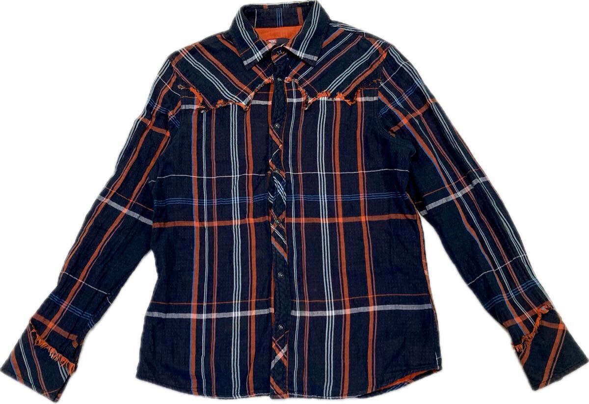 ★ディーゼル♂ピュアコットンダブルガーゼウエスタンシャツ★チェック★オレンジ黒