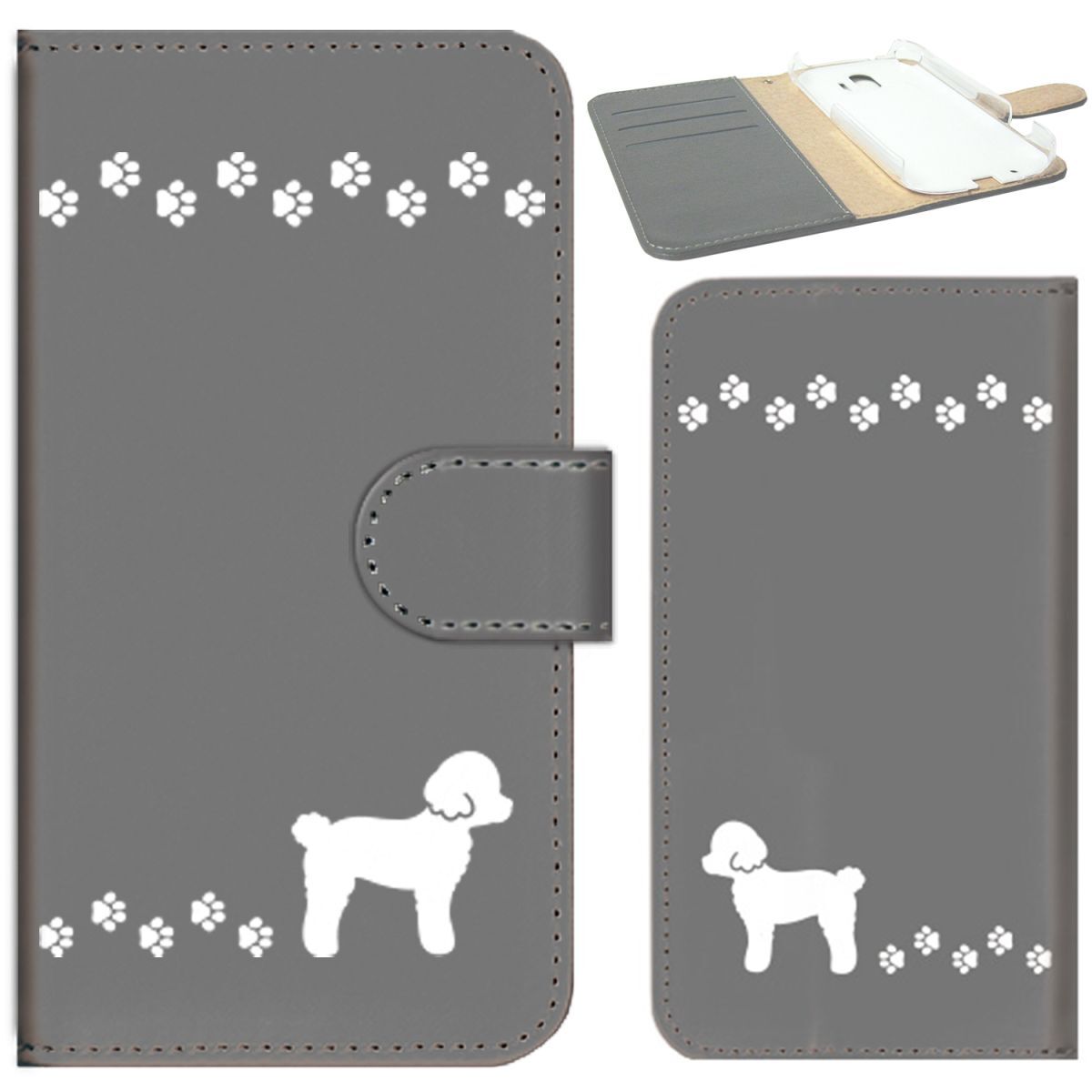 docomo らくらくスマートフォン F-01L/F-42A ケース 手帳型 (いぬのお散歩 かわいいプードル) FUJITSU F-01L-PD-GYR-YSZ-0434