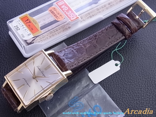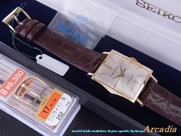 case-SS/14K GOLD FILLED BACK STEEL側 新品MARUMAN製最高級茶革本クロコベルト hand lether strap 純正AL-SEIKO刻印付きALゴールド尾錠(15mm) 約33(本体/ベルト/尾錠含み) 手巻き デッドストック品の為非防水 |