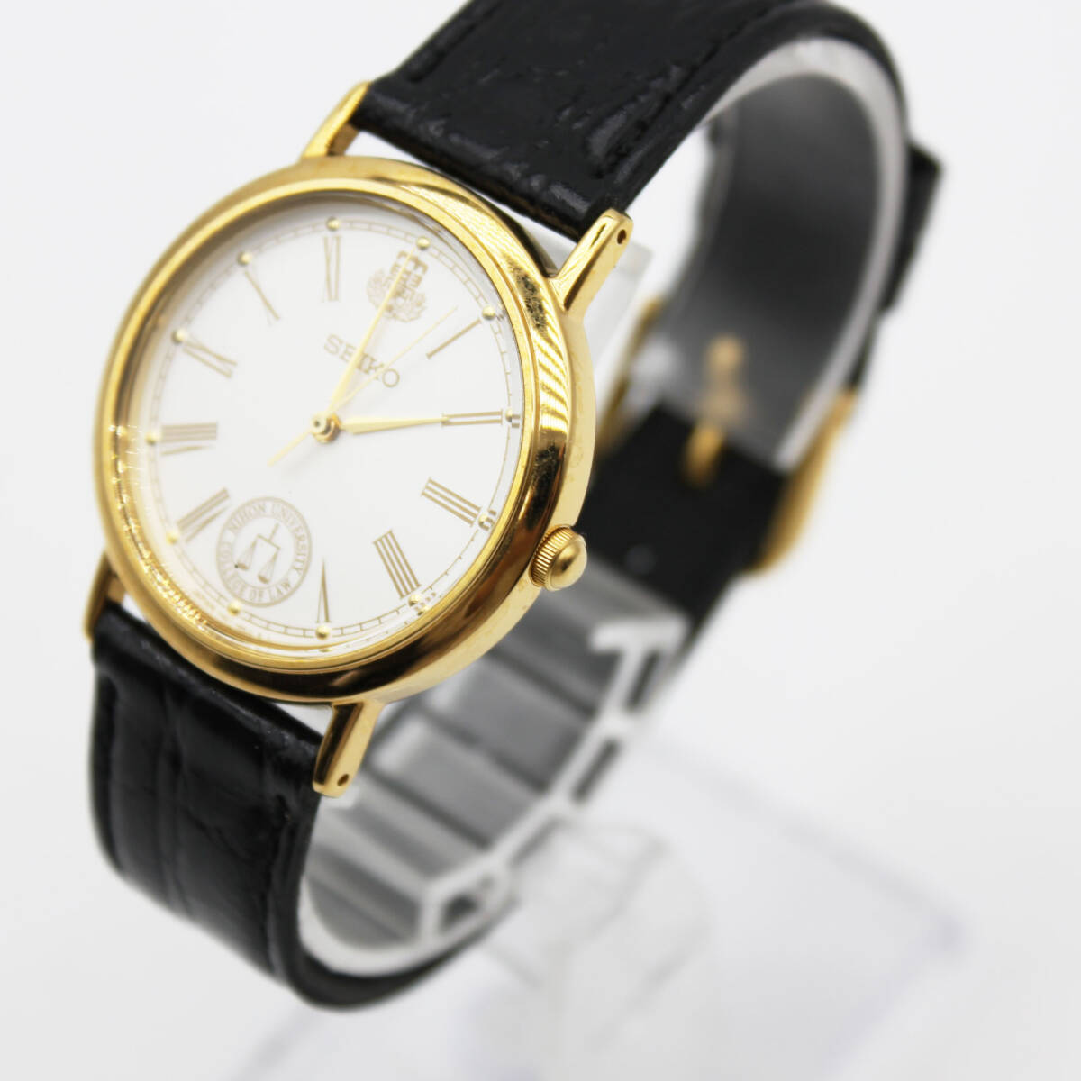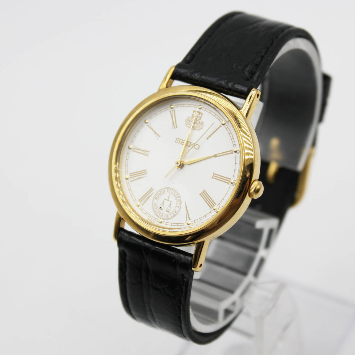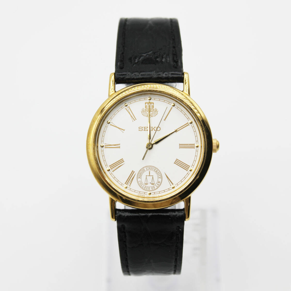 W251008-13 SEIKO セイコー 7N01-6890 卒業記念腕時計 クォーツ ジャンク 文字盤ホワイト 日本大学法学部 刻印入り レザー