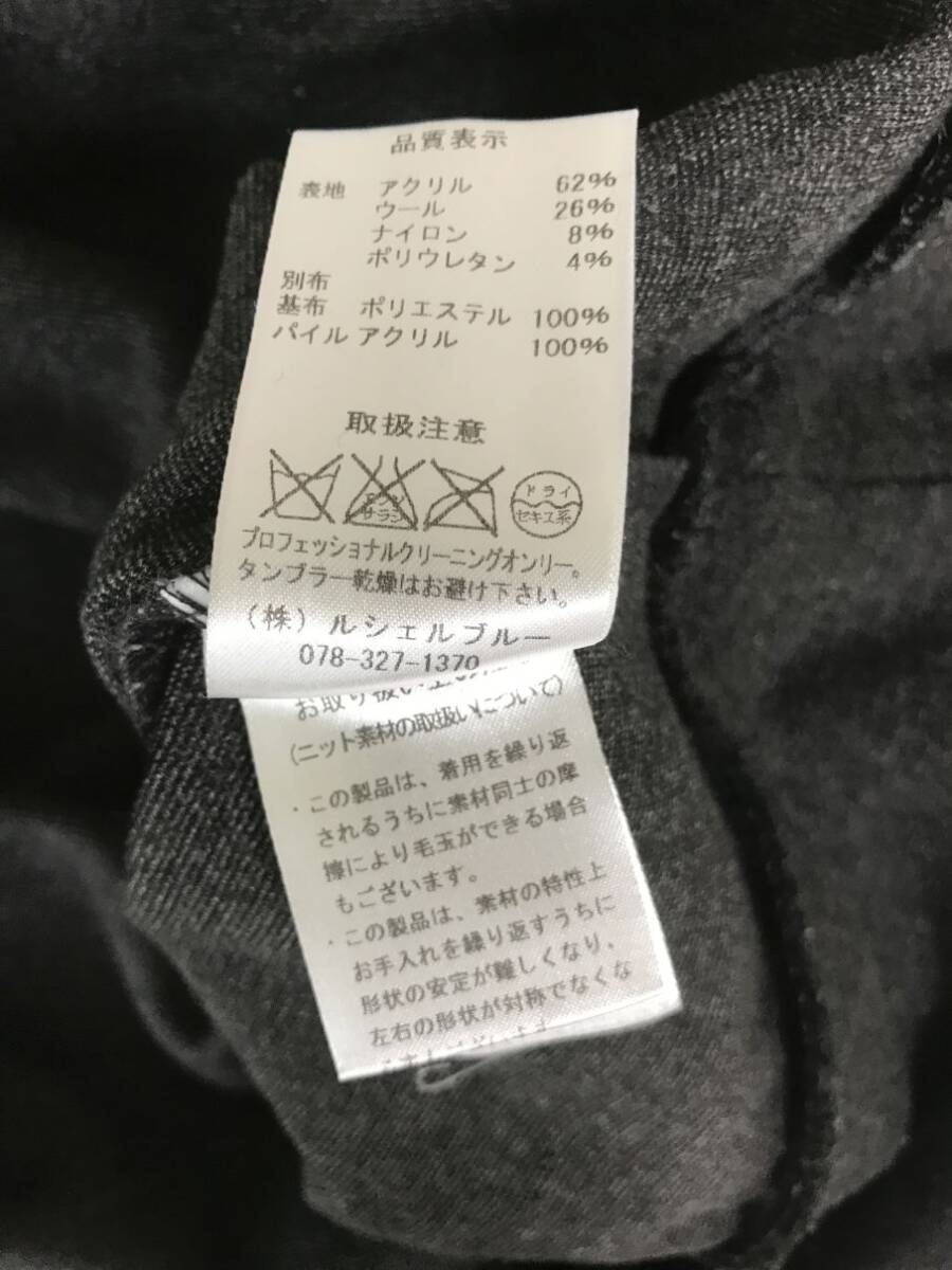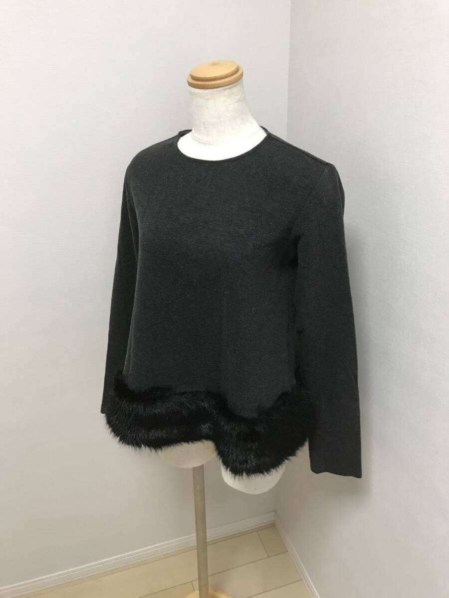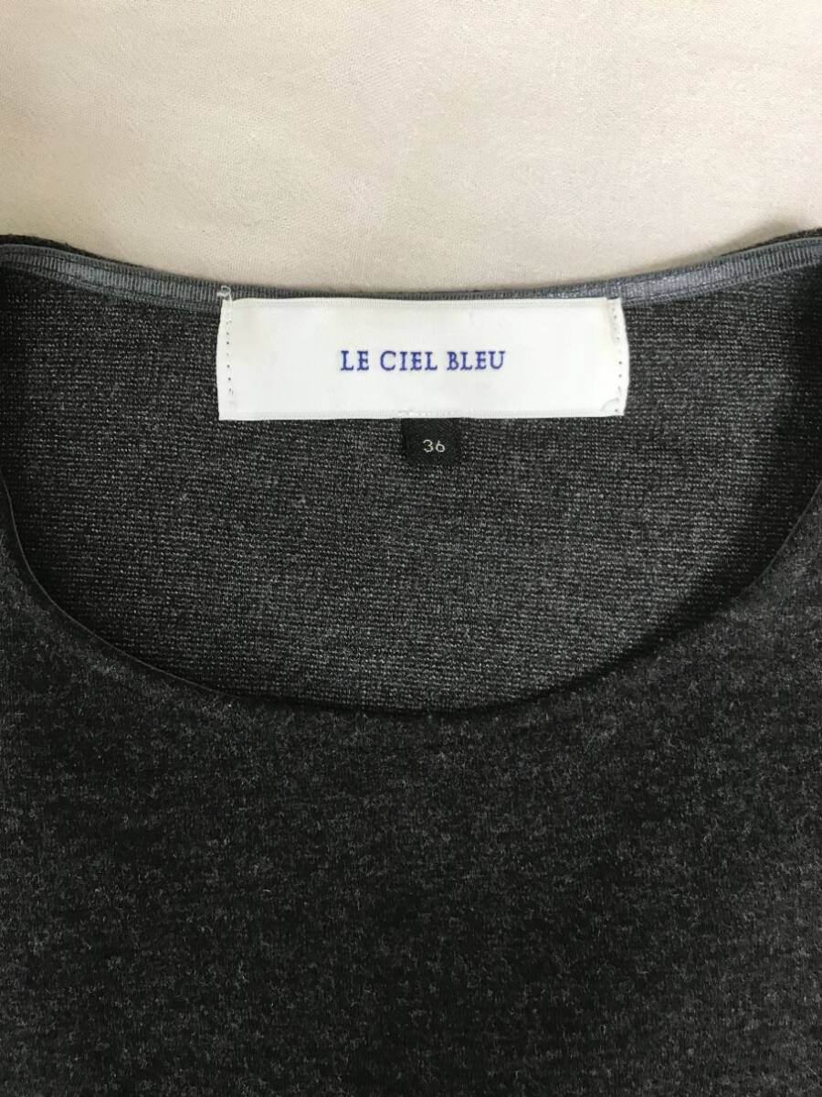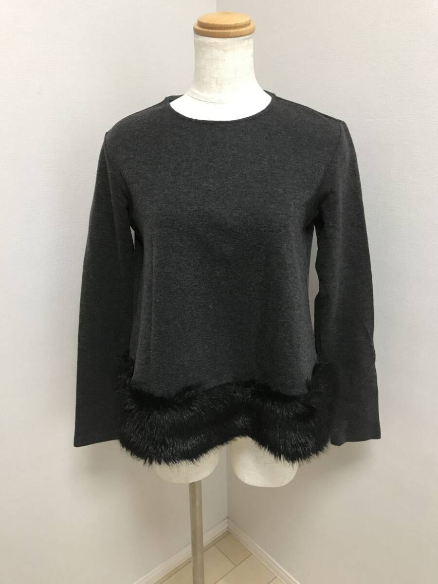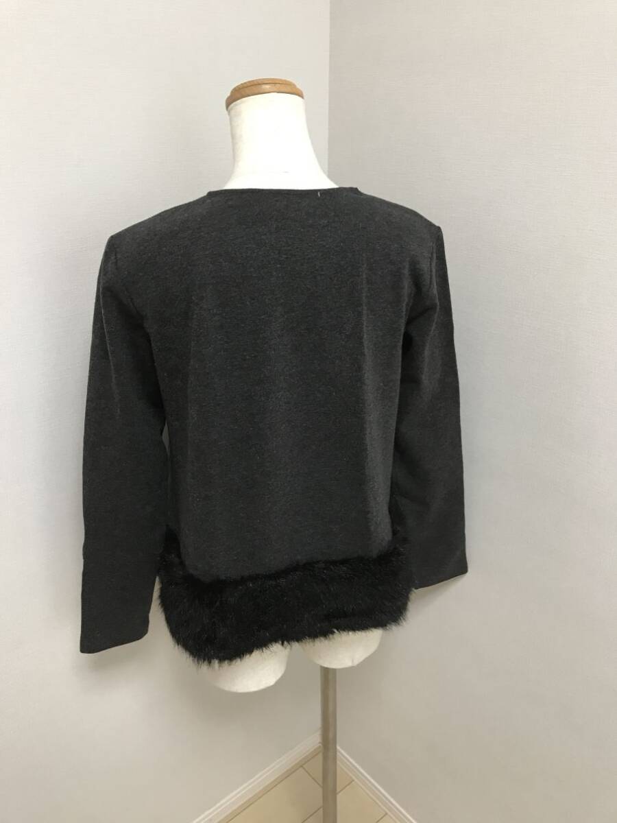 【ルシェルブルー LE CIEL BLEU】チャコールグレー長袖☆ファー・トップス☆カットソー☆サイズ36