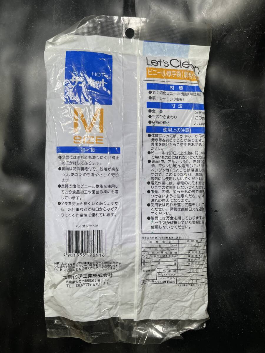 販売終了 入手不可  三興化学 サンホット ビニール厚手袋(裏毛付き)サイズM