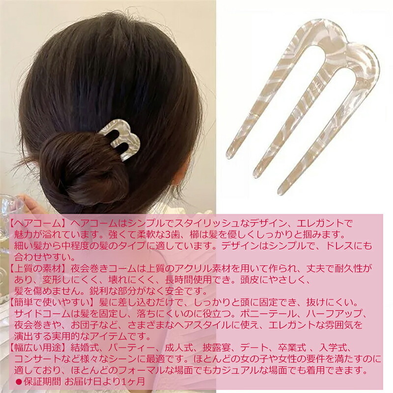 【上質の素材】夜会巻きコームは上質のアクリル素材を用いて作られ、丈夫で耐久性があり、変形しにくく、壊れにくく、長時間使用でき。頭皮にやさしく、髪を傷めません。鋭利な部分がなく安全です。