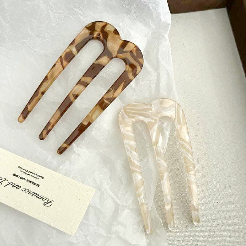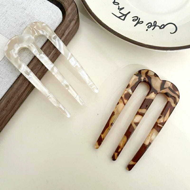 【ヘアコーム】ヘアコームはシンプルでスタイリッシュなデザイン、エレガントで魅力が溢れています。強くて柔軟な3歯、櫛は髪を優しくしっかりと掴みます。 細い髪から中程度の髪のタイプに適しています。デザインはシンプルで、ドレスにも合わせやすい。