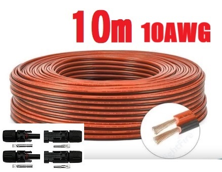ケーブル10m(赤10m+黒10m)+MC4コネクタ2ペア(計4つ)セットになります。