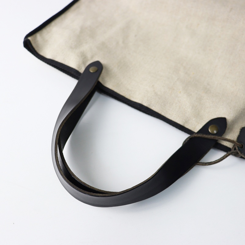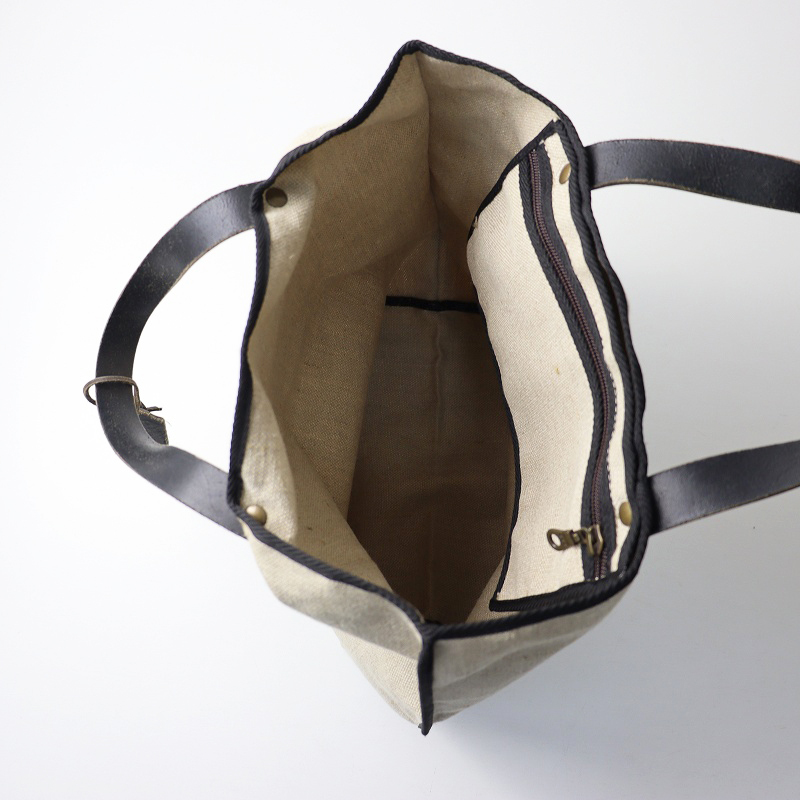 美品 タンピコ TAMPICO レザーハンドル キャンバストートバッグ\キナリ ブラック ハンドバッグ【2400014641493】