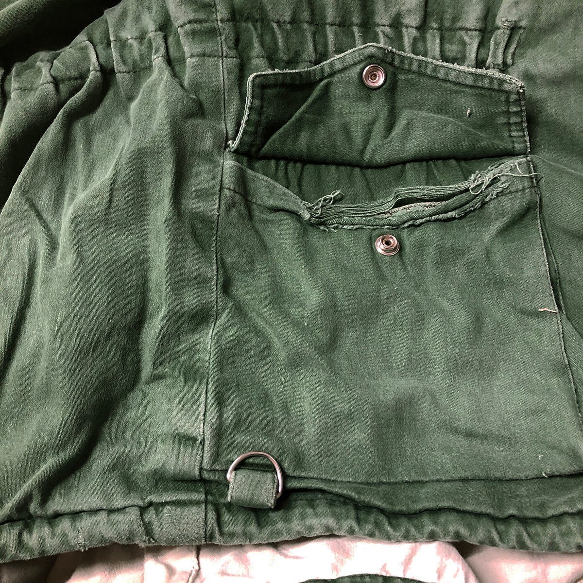 中古品です。使用感があります。両袖先や裾やフロントポケットなどボディの所々に擦り切れや破れがあります。