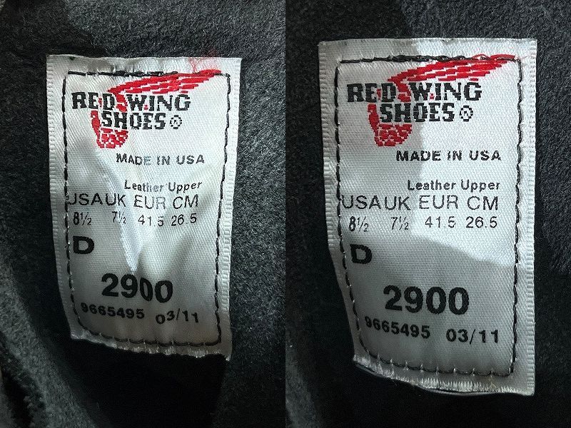 ■ 希少 廃盤 未使用 店頭展示品 USA製 RED WING レッドウィング 2900 11年製 6インチ スエード レザー ラインマン ブーツ 黒 26.5 ①