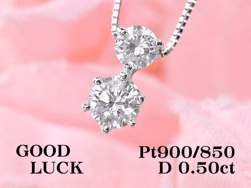 【新品・未使用】1円~最落無 天然ダイヤモンド 計0.50ct,プラチナ 胸元を上品に飾る 綺麗な輝き 縦2連 ダイヤモンド ペンダント