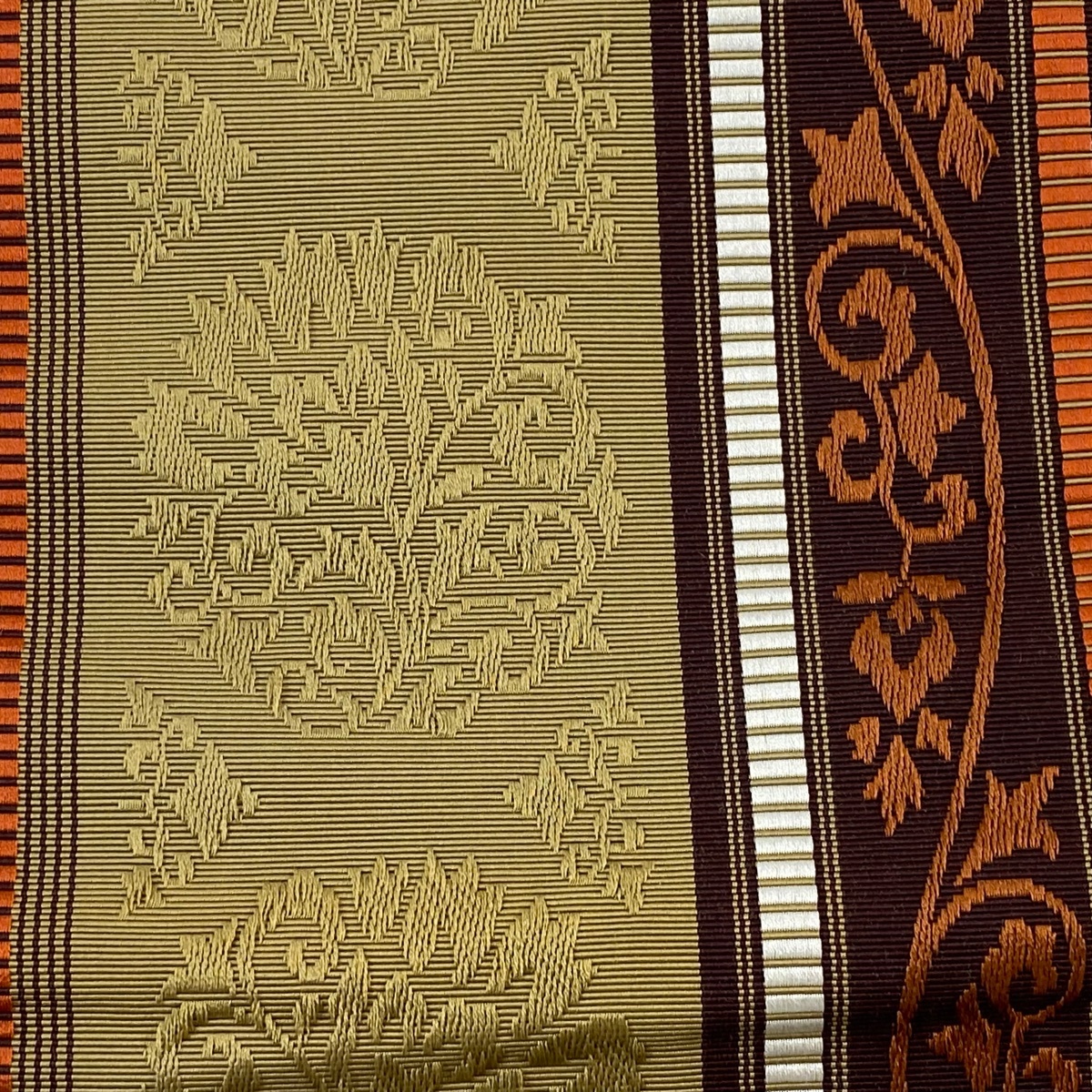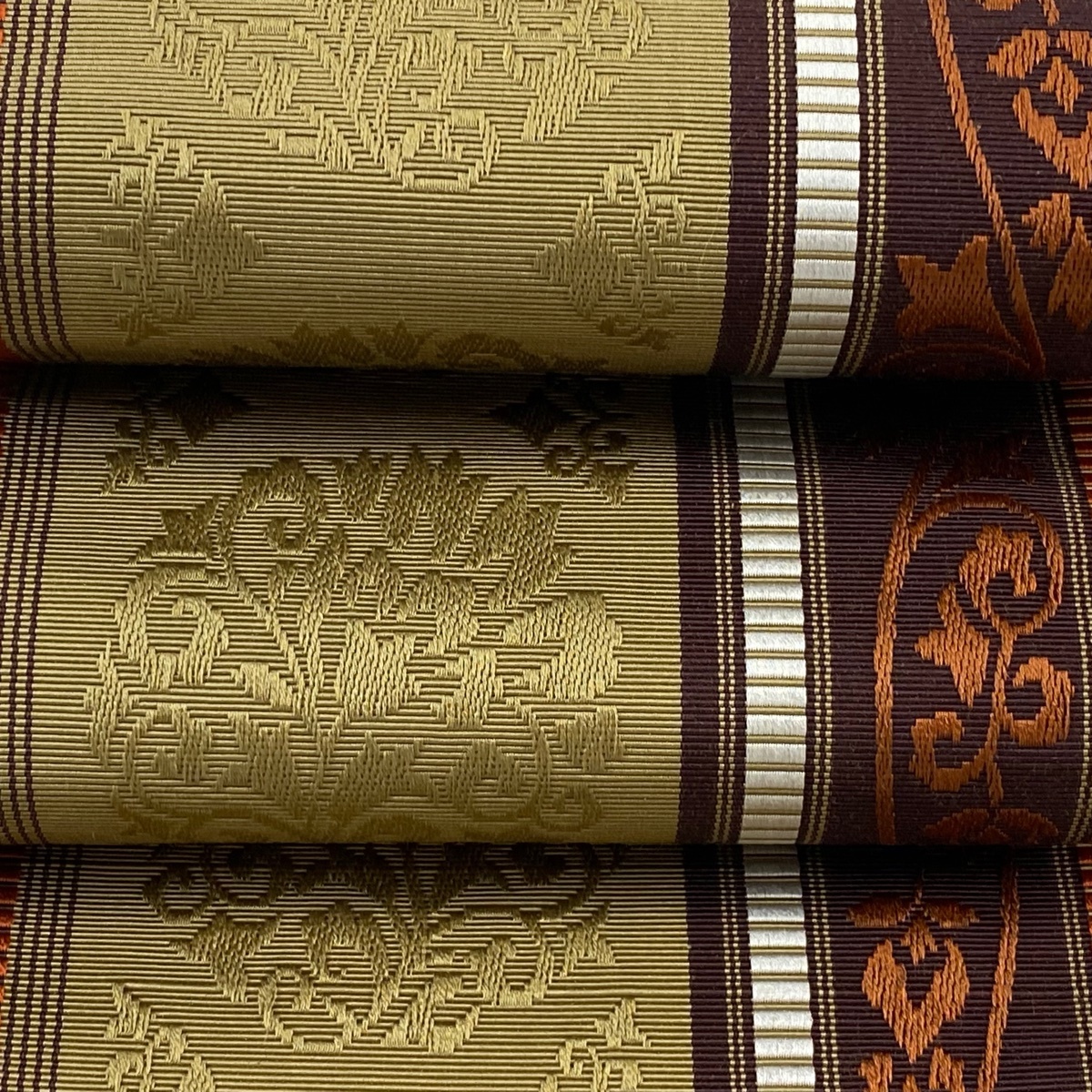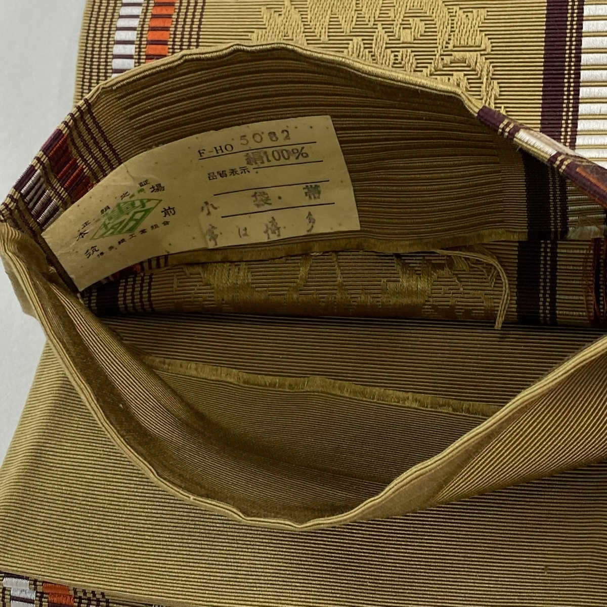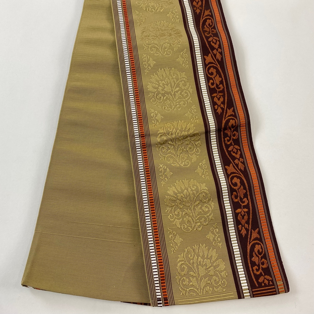 半幅帯 秀品 博多織 証紙 花唐草 縞 薄茶色 正絹 【中古】 |