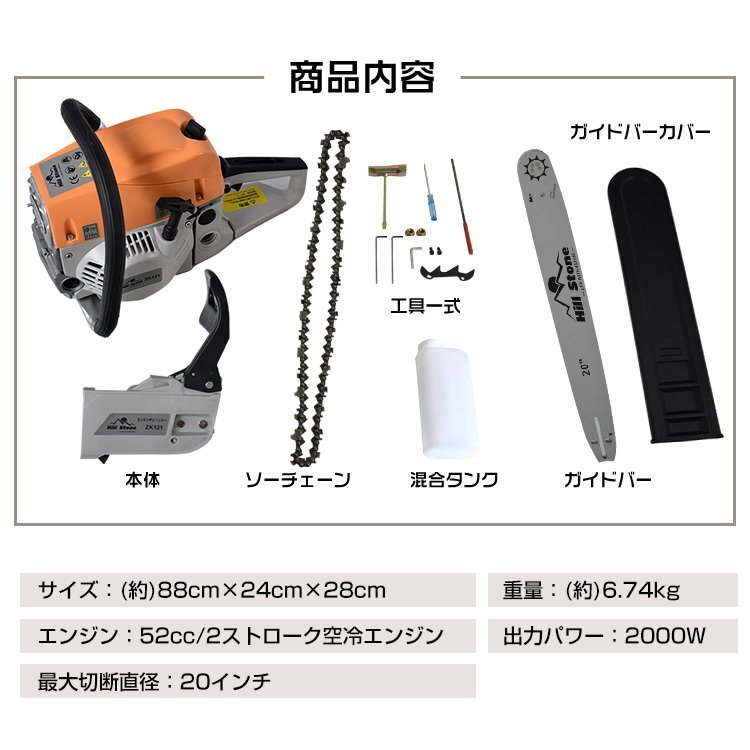 【在庫売り尽くしセール】送料無料 チェーンソー オイル エンジン式 チェンソー エンジンチェンソー 20インチ 52cc 薪割り 切断工具 zk121